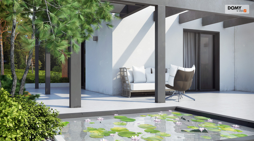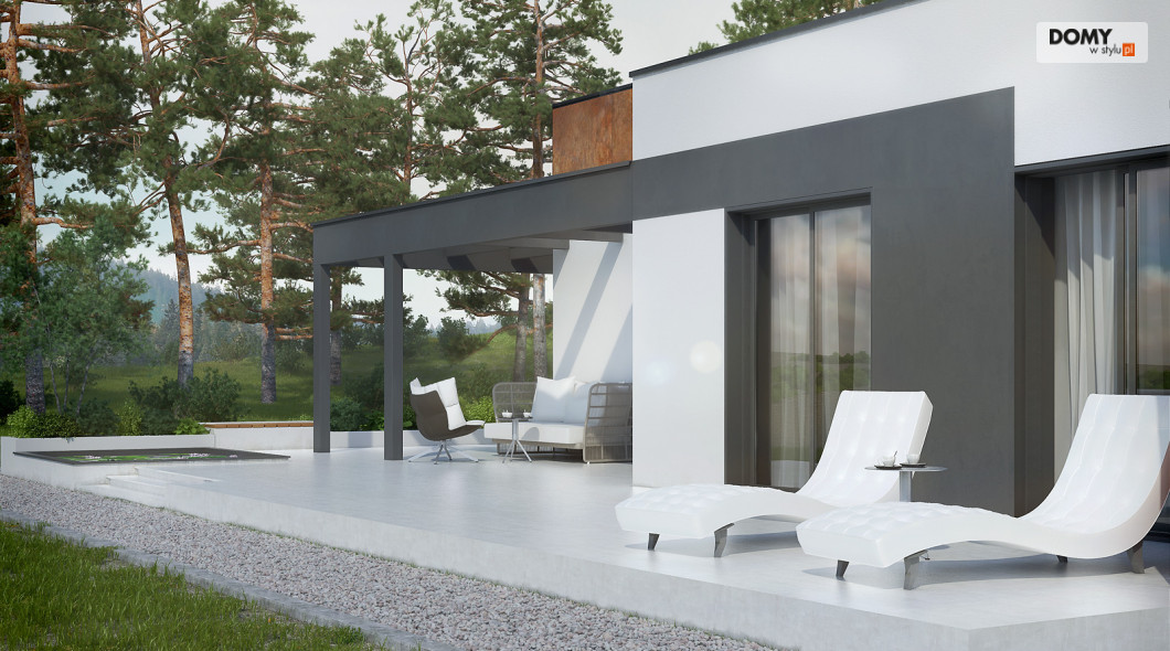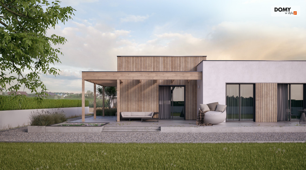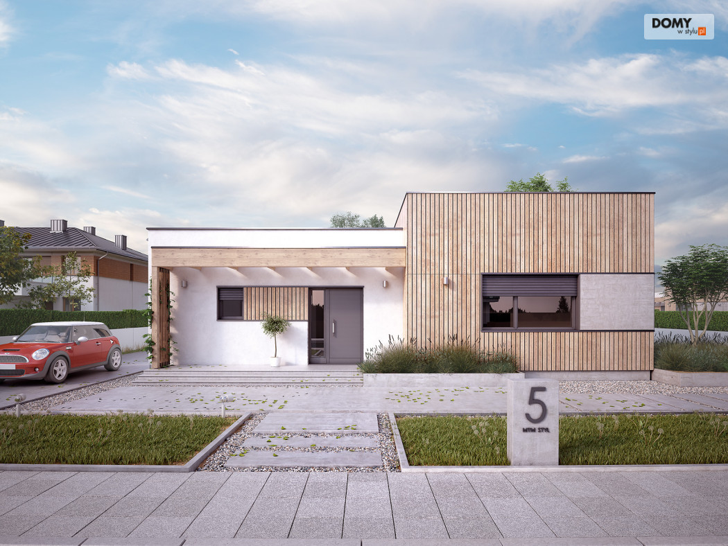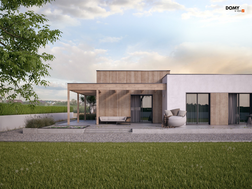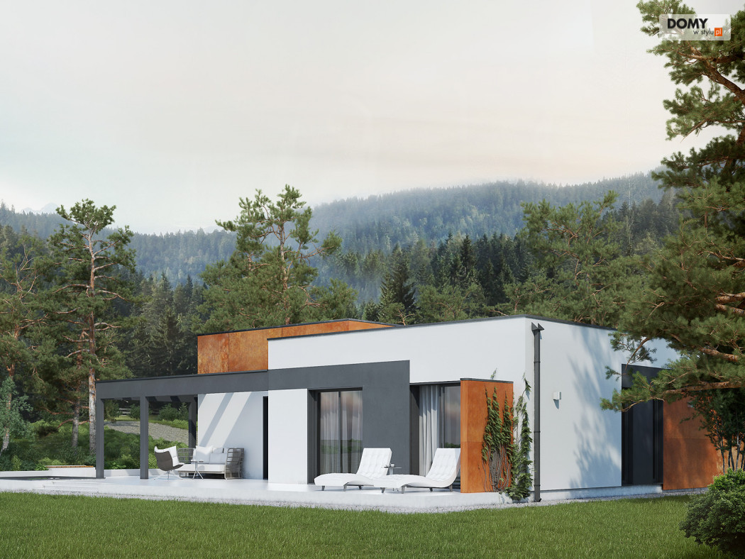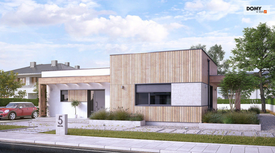 Niewielki, jednorodzinny dom parterowy odpowiadający potrzebom 3-osobowej rodziny. Optymalny układ pomieszczeń został podzielony na strefę dzienną oraz nocną. W strefie dziennej znajduje się przestronny salon z jadalnią, kuchnia ze spiżarnią oraz reprezentacyjny hol. W części nocnej znajdują się dwie sypialnie oraz łazienki.