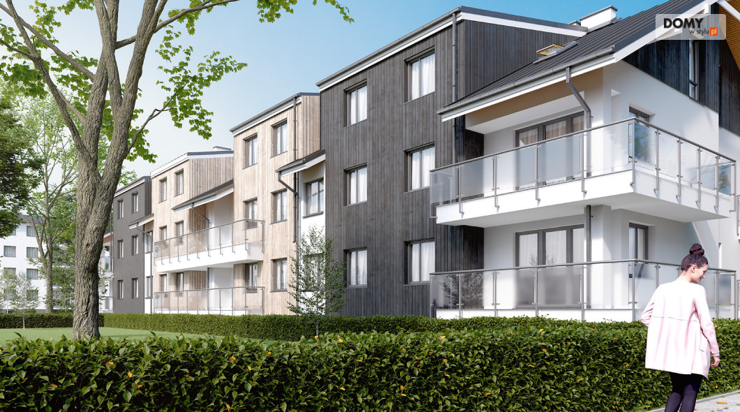 Akant 5 to projekt budynku wielorodzinnego, charakteryzujący się nowoczesnym wykończeniem elewacji. Prosta bryła budynku wyróżnia się dwuspadowym dachem urozmaiconym kwadratowymi lukarnami. Jasny tynk został połączony z drewnianą szalówką w dwóch odcieniach, dzięki czemu budynek zyskał niebanalny charakter. Szara stolarka w połączeniu ze szklanymi balustradami stanowią dodatkowy atut projektu. W projekcie na trzech kondygnacjach naziemnych zaprojektowano 22 mieszkania, które charakteryzują się powierzchnią użytkową od 45 m2 do 90 m2. Mieszkania są zróżnicowane zarówno pod względem ilości pokoi oraz funkcjonalności. Do każdego z mieszkań przynależy duży taras lub balkon. W projekcie znajdują się dwie klatki z dostępem dla osób niepełnosprawnych.