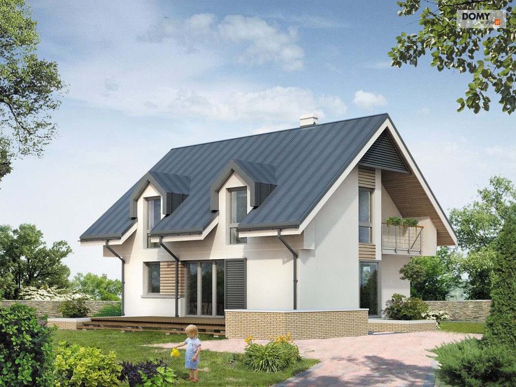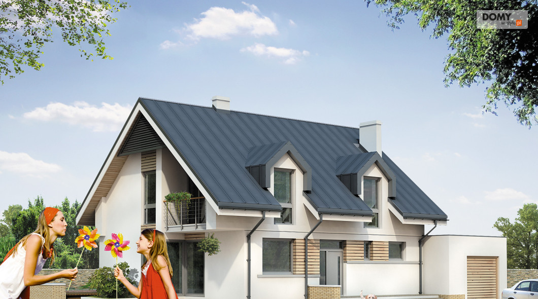 Dom mieszkalny przeznaczony dla 3 – 4-osobowej rodziny. Nowoczesne elementy domu podkreślają jego oryginalność i nadają tej prostej bryle niepowtarzalny charakter. Istnieje możliwość wybudowania domu bez garażu lub powiększenie garażu do dwóch stanowisk.