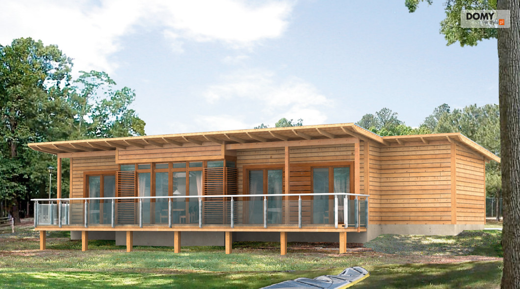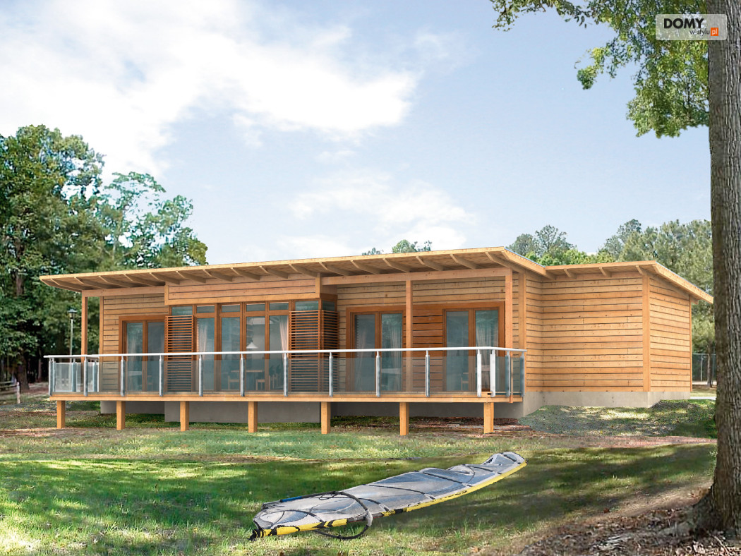 Dom letniskowy dla czterech osób. W awangardowej bryle zaprojektowano nowoczesne wnętrze. W aneksie łazienkowym zaprojektowano miejsce na saunę. Istnieje możliwość adaptacji na dom mieszkalny, jednorodzinny.
