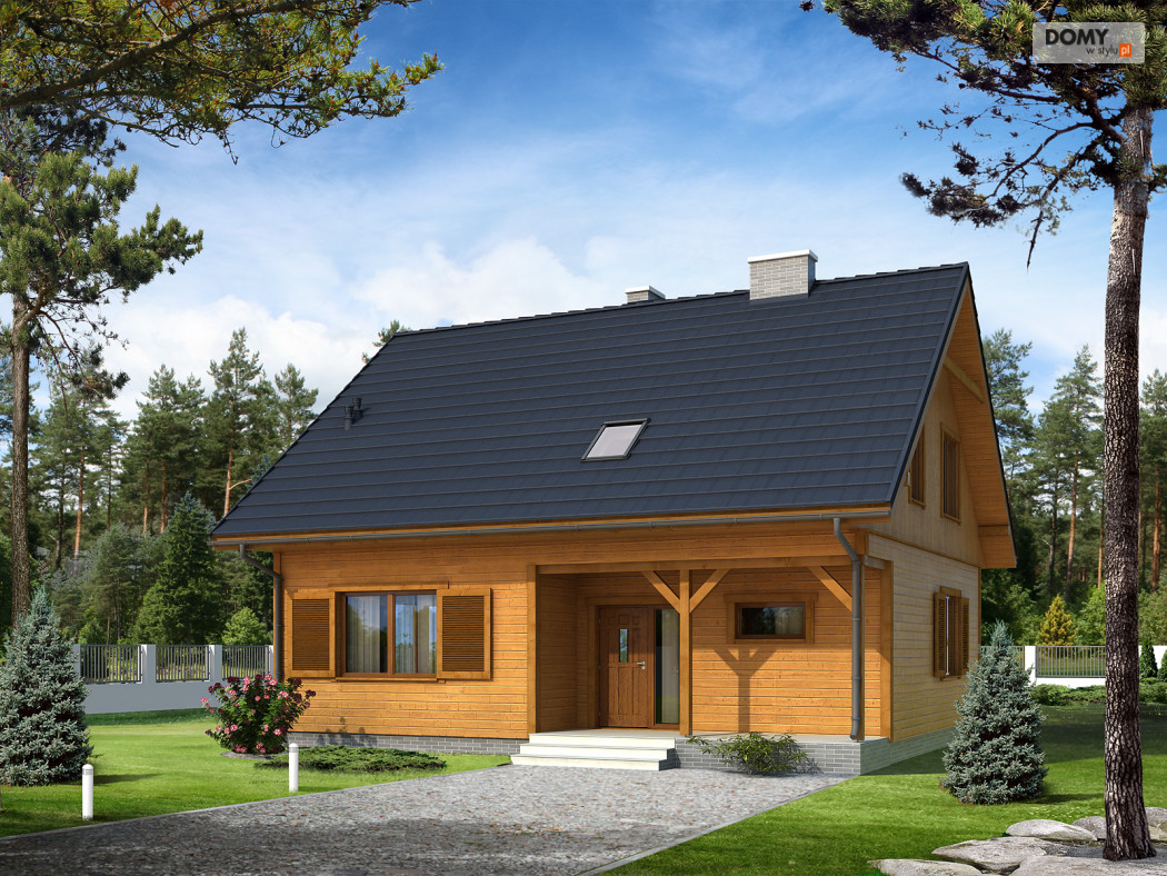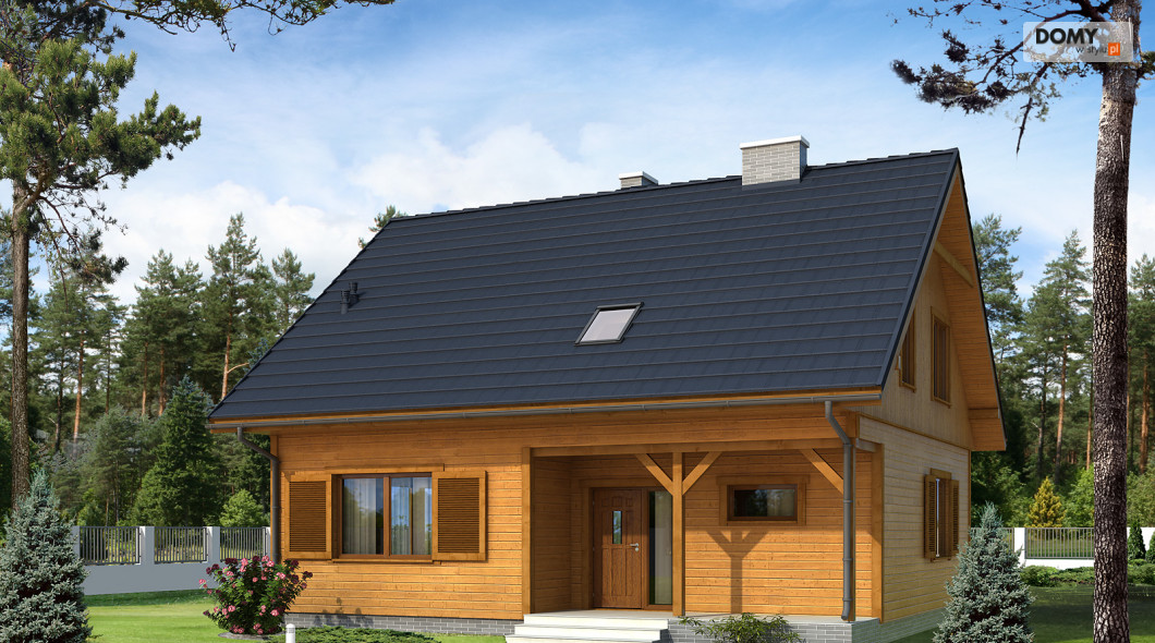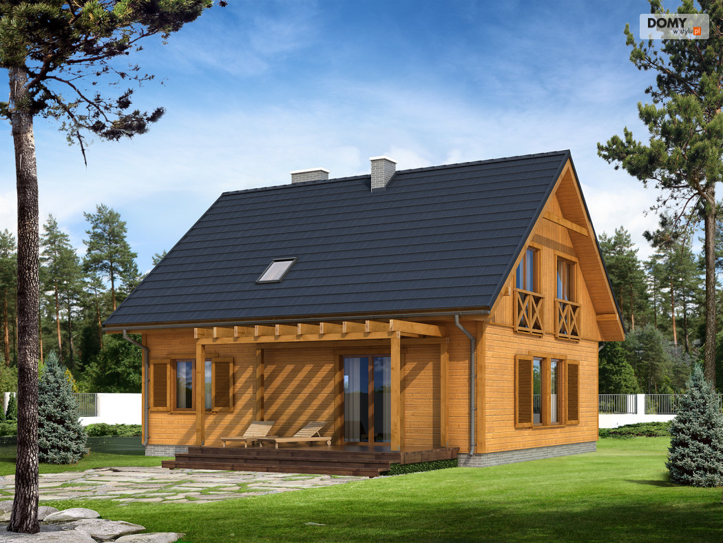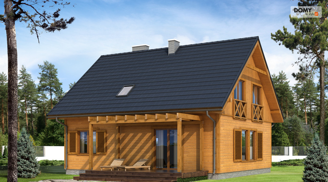 Niewielki, ale wygodny drewniany dom dla 4 – 5-osobowej rodziny. Zlokalizowana na parterze część dzienna mieści w sobie przestronny pokój dzienny z jadalnią, kuchnię, spiżarnię i gabinet. Znajduje się tam też duża kotłownia oraz wc. Na poddaszu znajdują się trzy sypialnie, łazienka i garderoba. Prosta bryła z dwuspadowym dachem czyni dom tanim w realizacji i użytkowaniu.