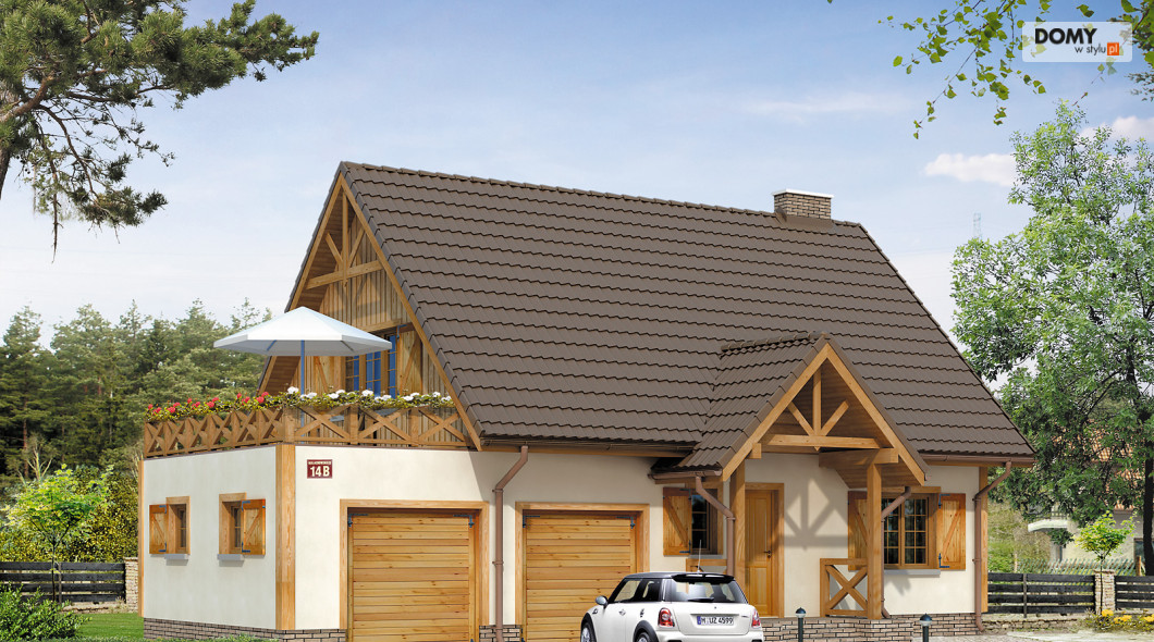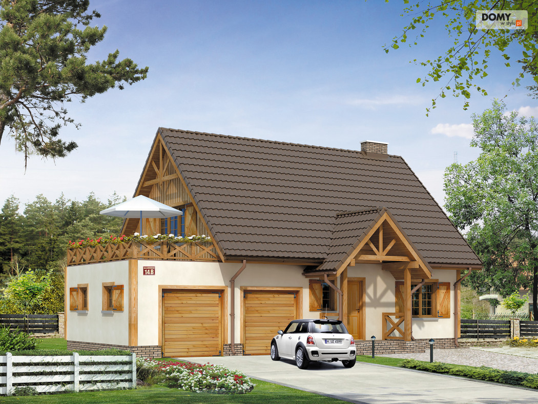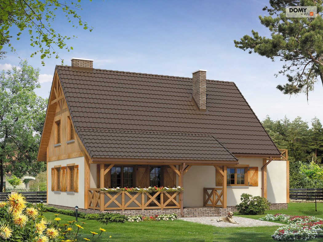 Prosty, funkcjonalny dom jednorodzinny z użytkowym poddaszem, garażem, przeznaczony dla 4 - 5-osobowej rodziny. Dom posiada duży zadaszony taras dostępny z salonu. Niewielkie rozmiary domu pozwalają na usytuowanie go na małej działce.