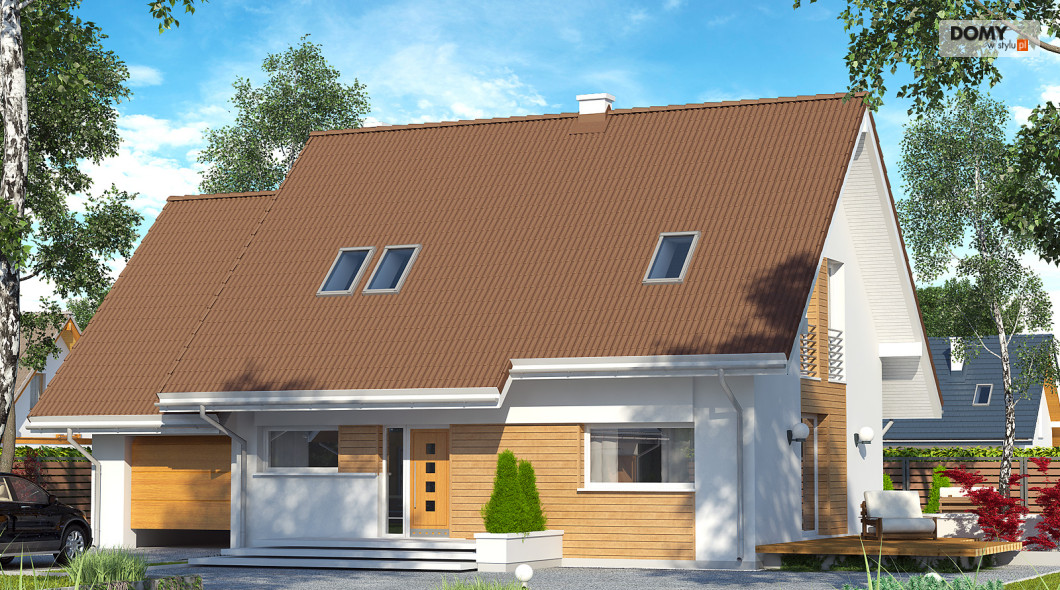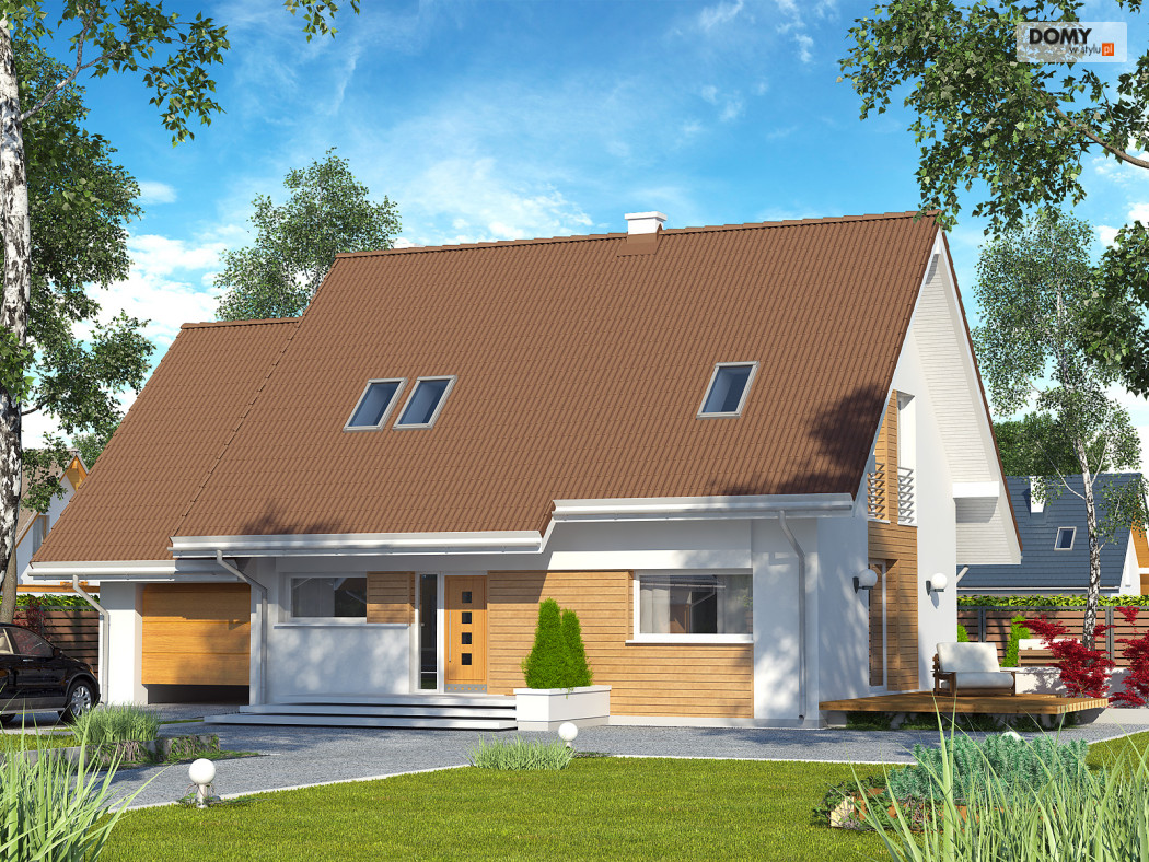 Azuryt jest projektem energooszczędnym, skrojonym na miarę potrzeb 4-osobowej rodziny. Charakteryzuje się prostą bryłą przykrytą dwuspadowym dachem. Stanowi umiejętne połączeniem tradycyjnej bryły z nowoczesną stylistyką. Do budynku przylega jednostanowiskowy garaż ze sporą kotłownią, posiadającą wejście od strony elewacji ogrodowej. Przestrzeń parteru wypełnia salon połączony z aneksem kuchennym - tworząc spójną całość. Dodatkowo na parterze znajduje się pokój/gabinet. Na poddaszu zaprojektowano trzy sypialnie oraz łazienkę. Projekt Azuryt posiada trzy wersje zagospodarowania przestrzeni nad garażem.