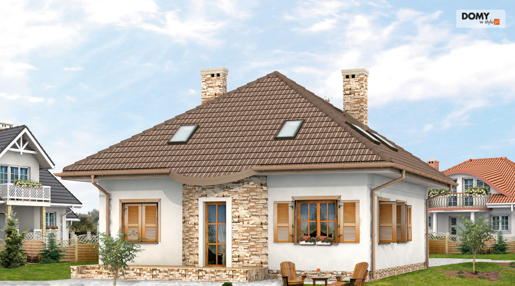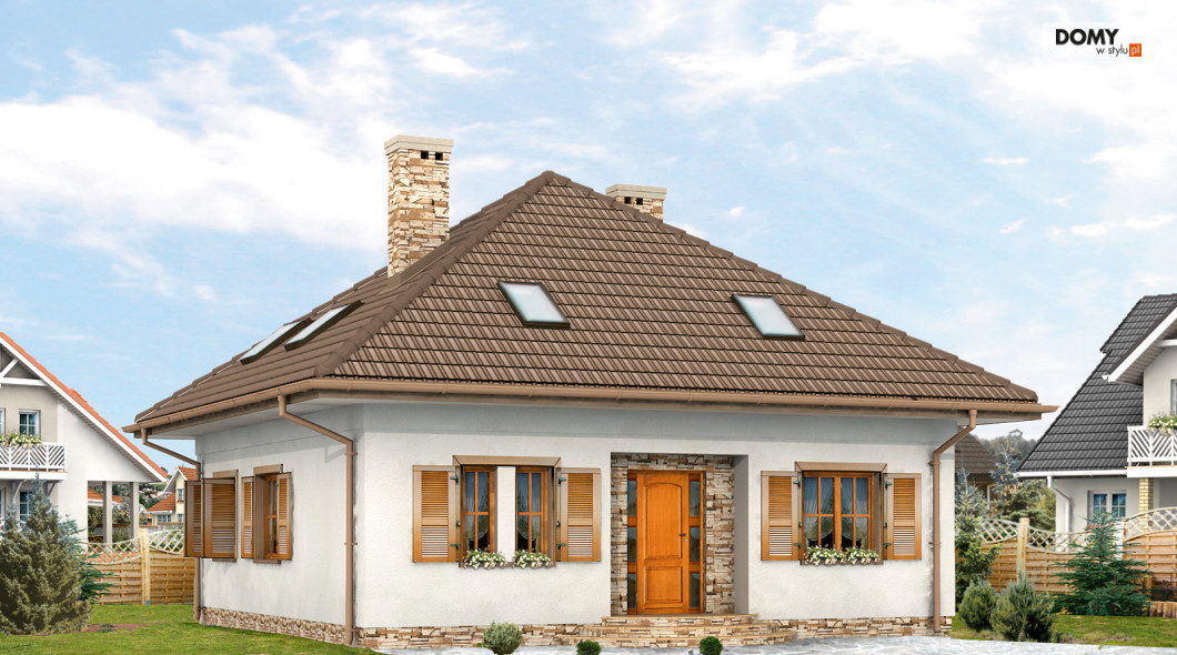 Dom jednorodzinny z użytkowym poddaszem, niepodpiwniczony. Dom przeznaczony dla 3 – 4-osobowej rodziny. Prosta bryła budynku z dachem kopertowym. Klarowny układ funkcjonalny.