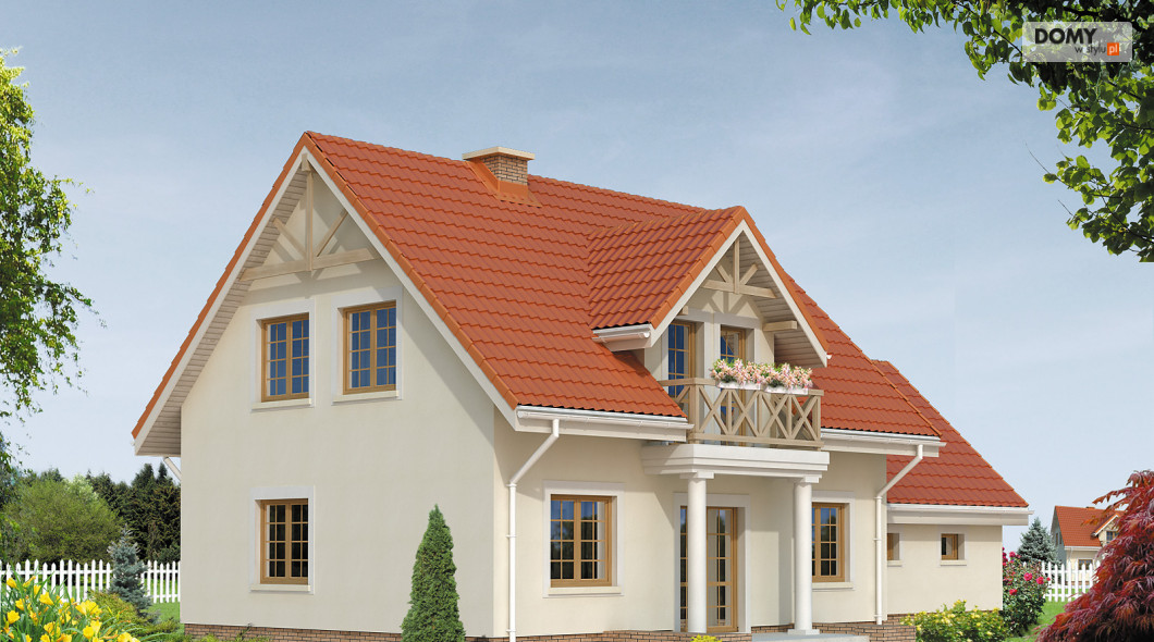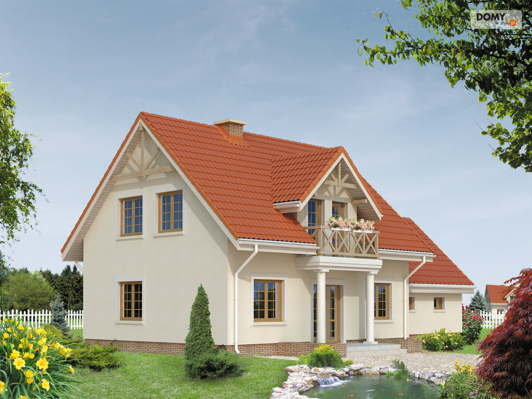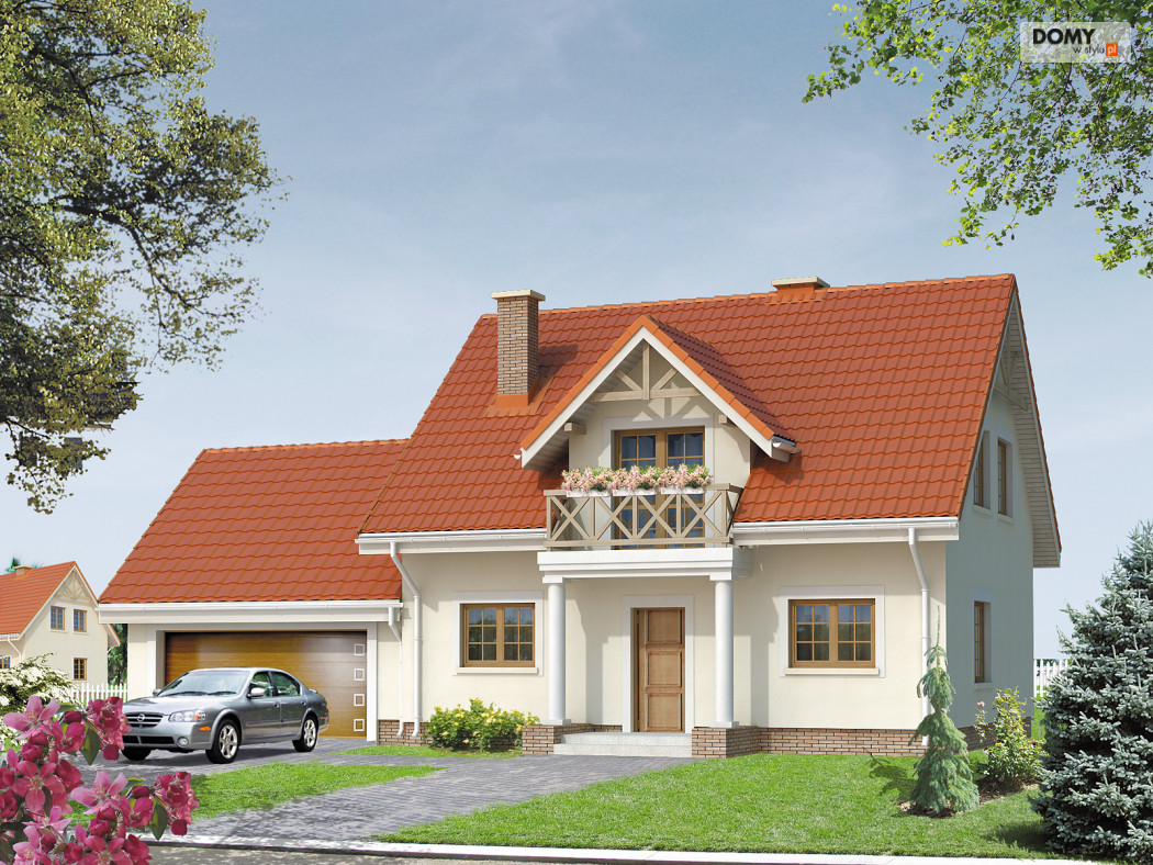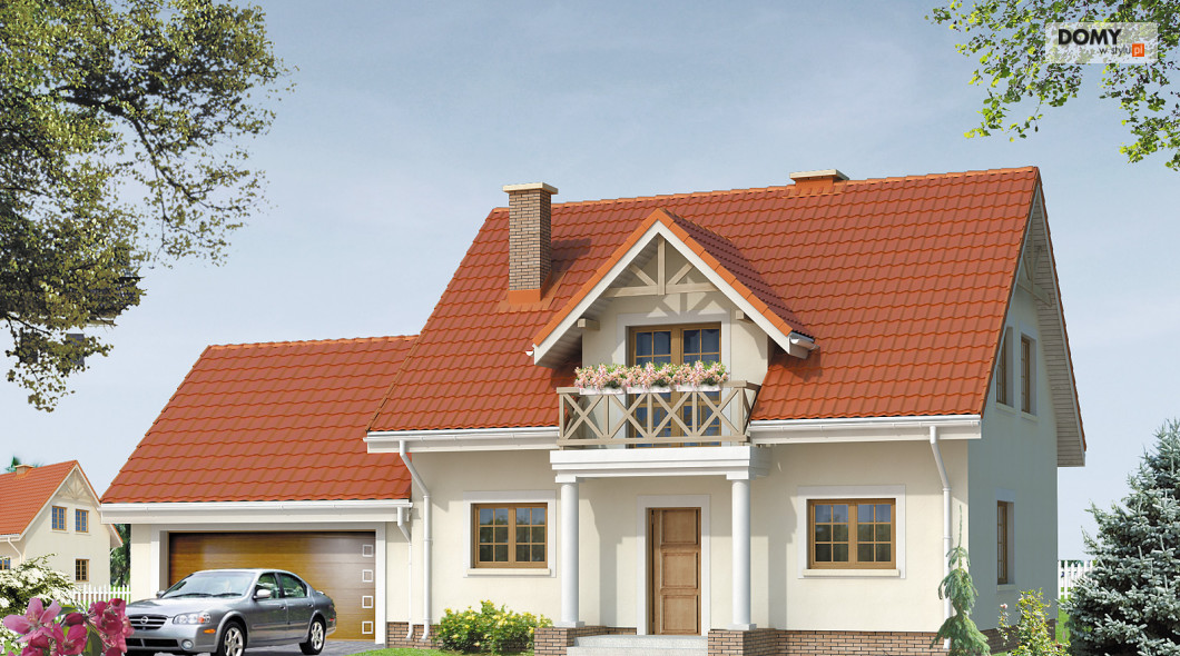 Dom jednorodzinny z użytkowym poddaszem i dwustanowiskowym garażem. Na parterze oprócz części dziennej znajduje się dodatkowy pokój. Na poddaszu zaprojektowano trzy sypialnie, łazienkę i garderobę.
