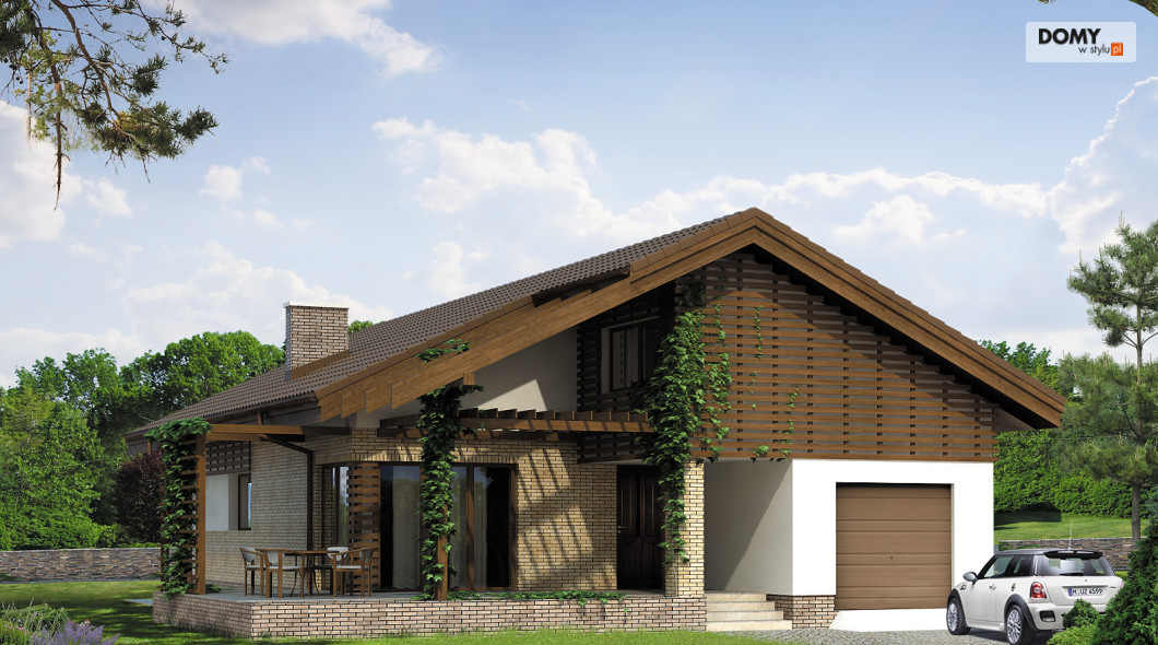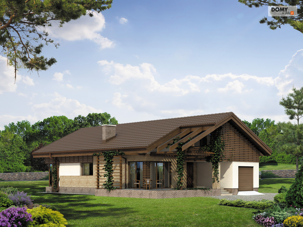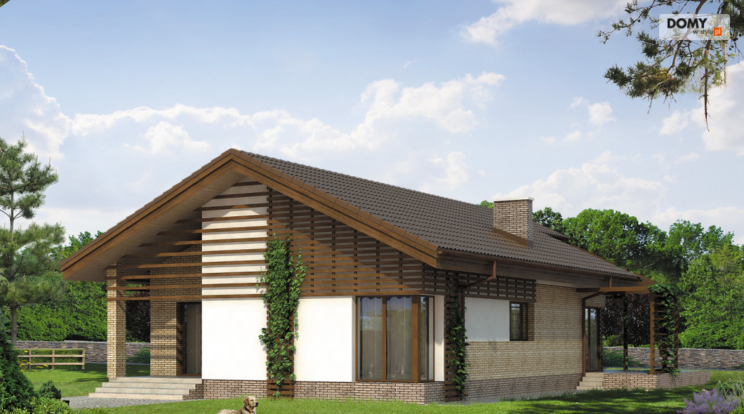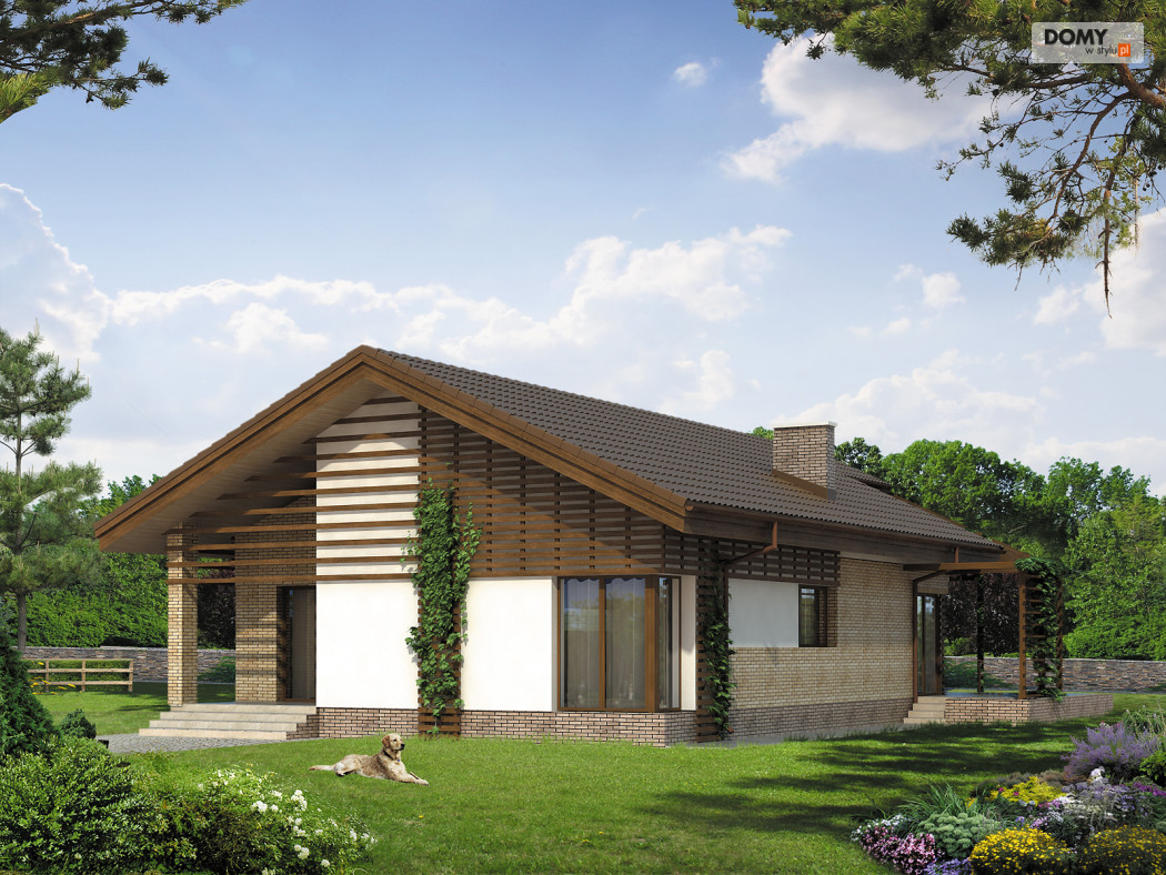 Dom parterowy z użytkowym poddaszem, niepodpiwniczony, dla 4 - 5-osobowej rodziny. Wejście od południa. Praktyczny układ funkcjonalny z wyraźnym podziałem na część dzienną i nocną. Ciekawa, przestronna antresola z możliwością adaptacji np. na bawialnię. Dodatkowy pokój na poddaszu.