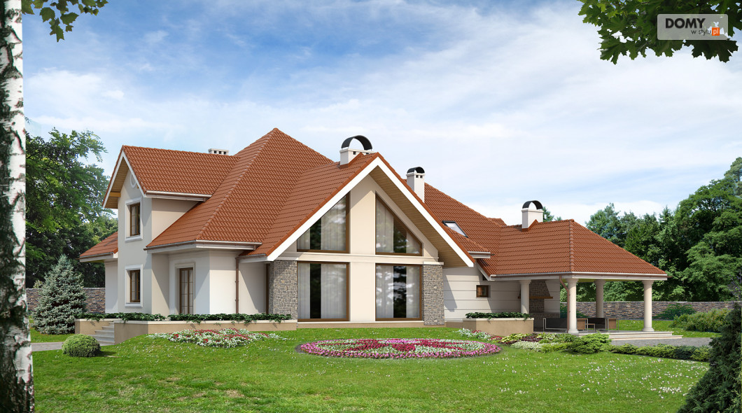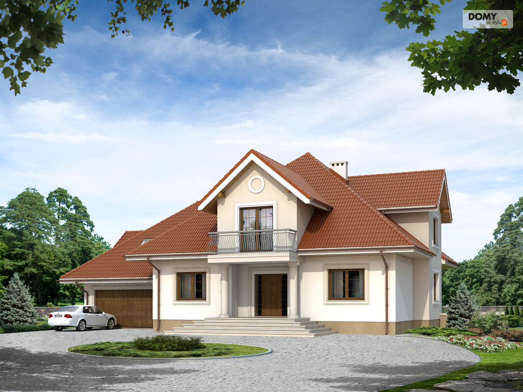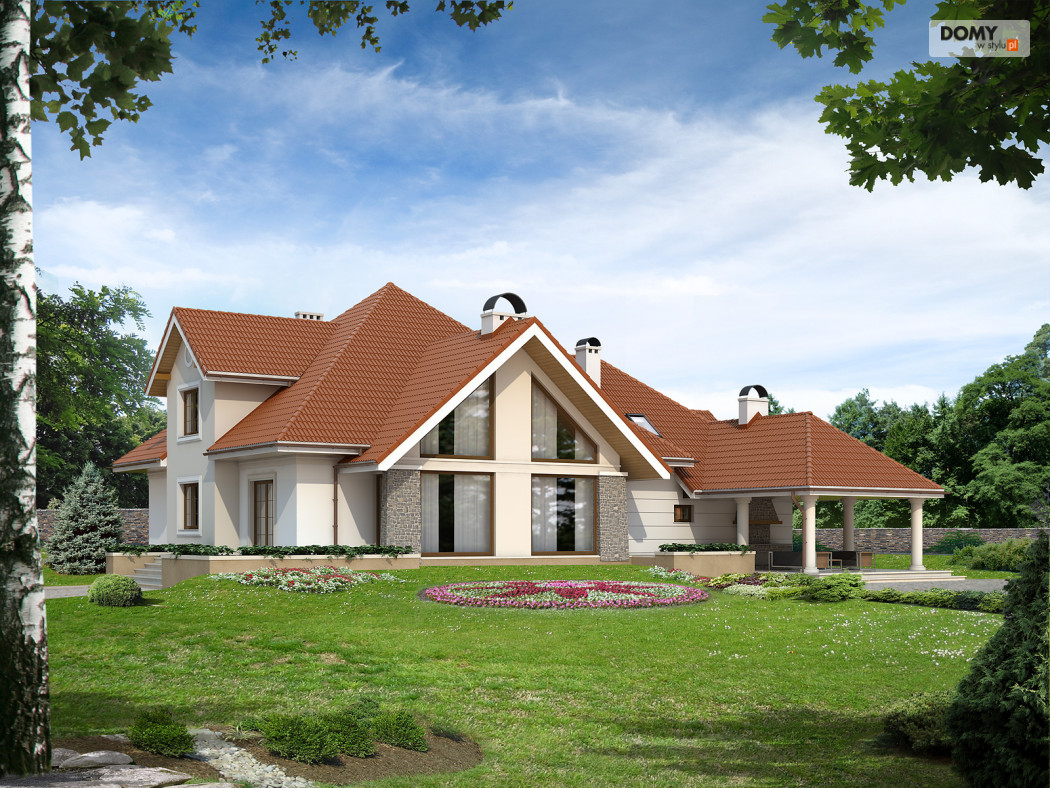 Duży, jednorodzinny budynek mieszkalny, parterowy, z użytkowym poddaszem, przeznaczony dla 6-osobowej rodziny. W tym domu na parterze zaprojektowano przestronną część (salon z jadalnią, kuchnia), dodatkowy pokój z łazienką i garderobą, oraz część gospodarczą (dwustanowiskowy garaż, kotłownia, pomieszczenie gospodarcze). Na poddaszu przewidziano cztery sypialnie, dwie łazienki i pralnię. Dodatkowym atutem projektu jest antresola.