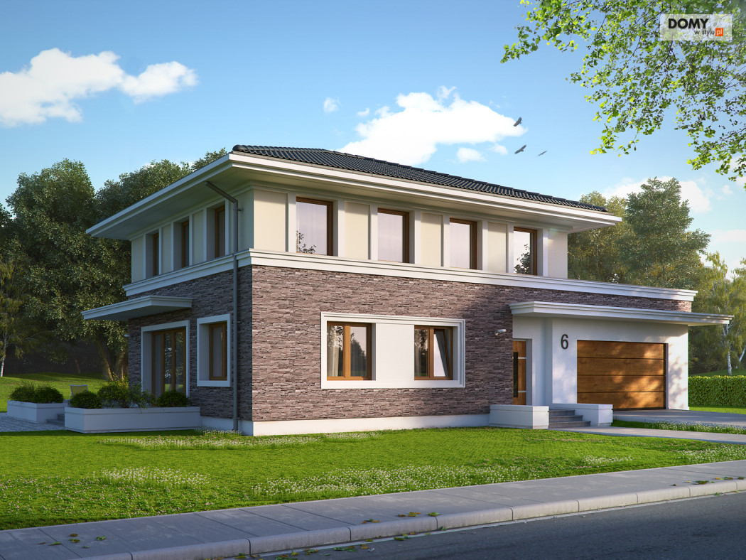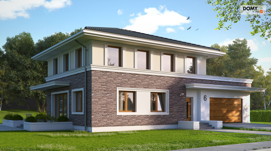 Dom jednorodzinny, dwukondygnacyjny z garażem dwustanowiskowym, niepodpiwniczony. Dzięki dwóm pełnym kondygnacjom istnieje możliwość łatwej aranżacji pomieszczeń. Na piętrze znajdują się trzy sypialnie i łazienka.