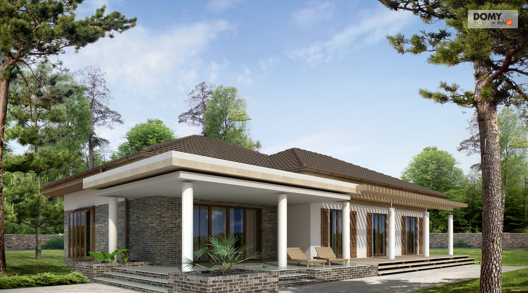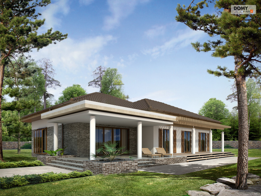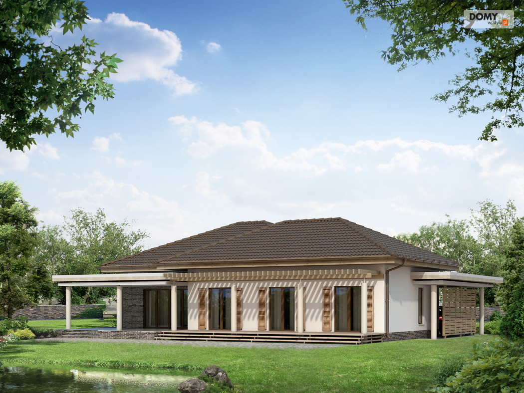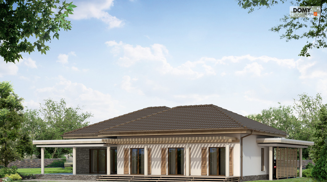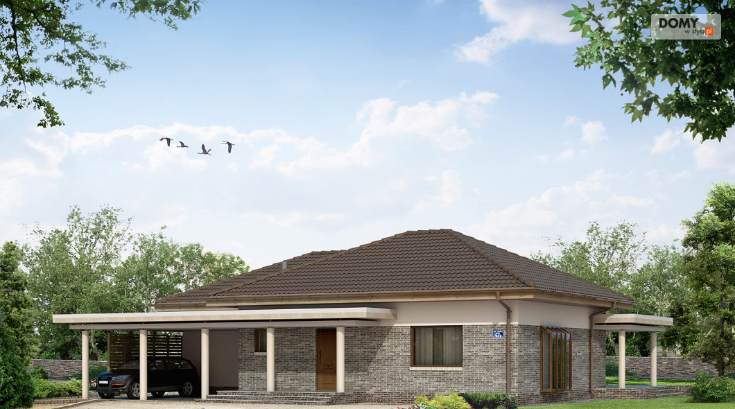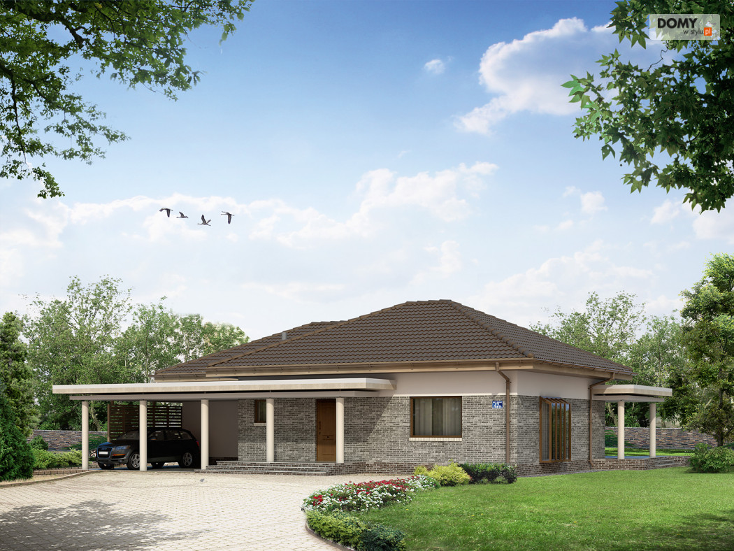 Dom mieszkalny jednorodzinny przeznaczony dla 4-osobowej rodziny. Zaprojektowano czytelny, funkcjonalny układ parteru. Wyraźnie oddzielona część nocna od części dziennej z osobną łazienką dla rodziców. Istnieje możliwość zabudowania wiaty garażowej.