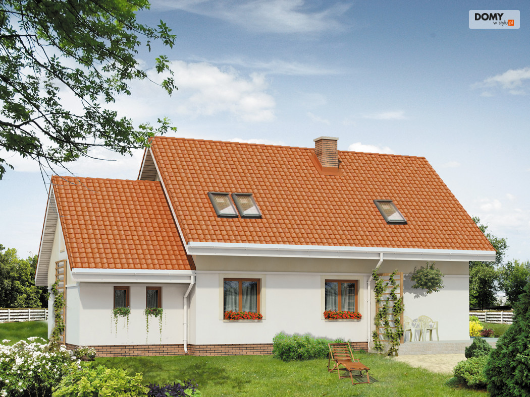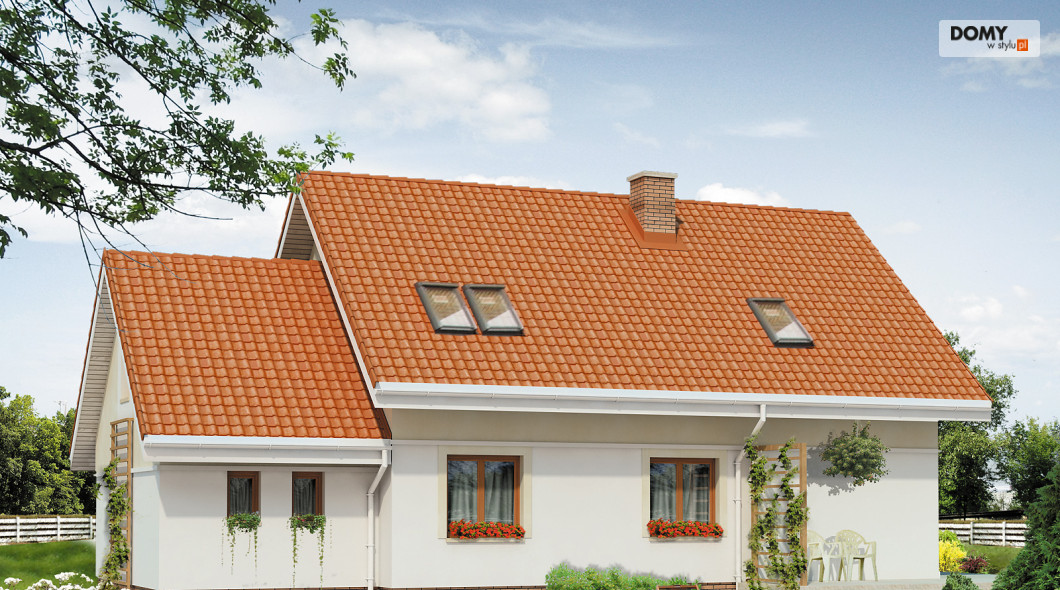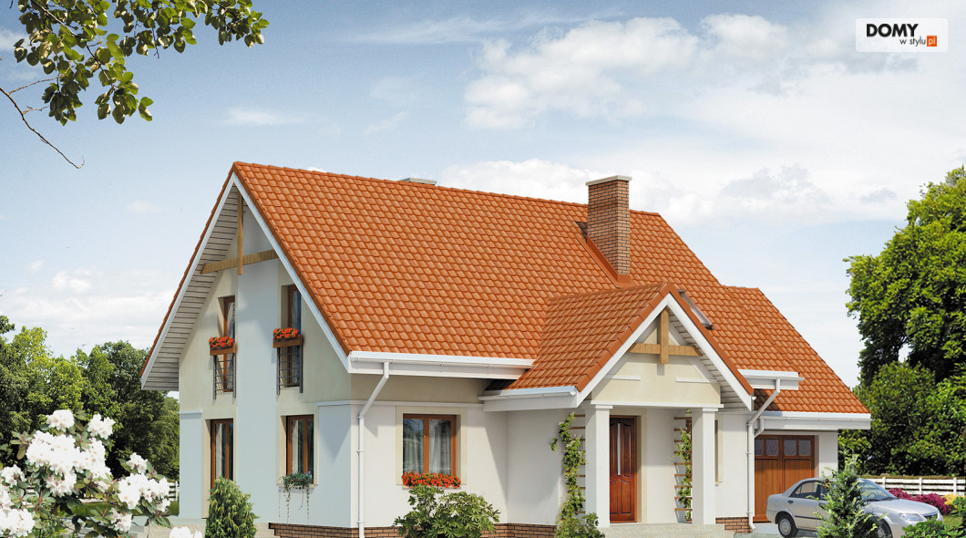 Dom jednorodzinny z użytkowym poddaszem, dla 4 – 5-osobowej rodziny z garażem jednostanowiskowym. Wyraźny podział na strefę nocną i dzienną. Praktyczny układ funkcjonalny.