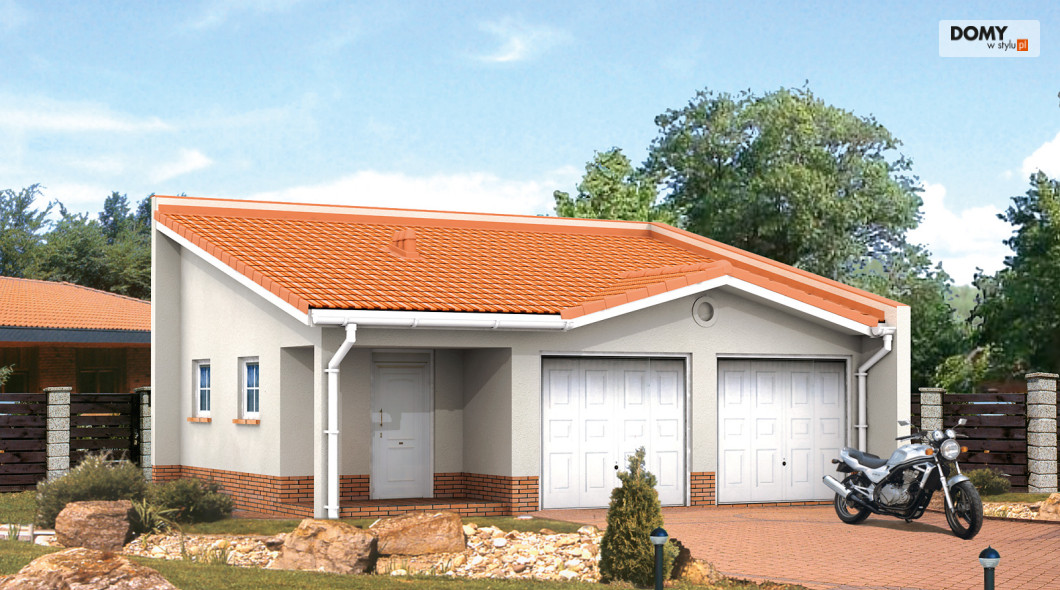 Garaż dwustanowiskowy, wolno stojący z pomieszczeniem gospodarczym. Istnieje możliwość usytuowania tylną i prawą ścianą po granicy działki.