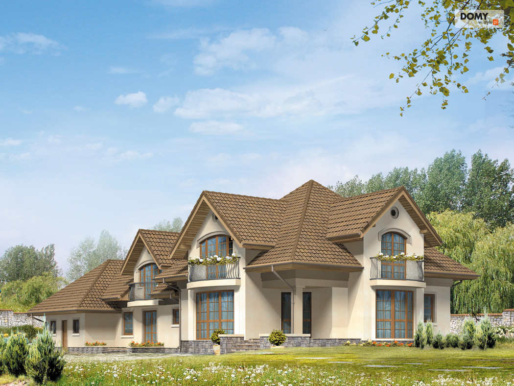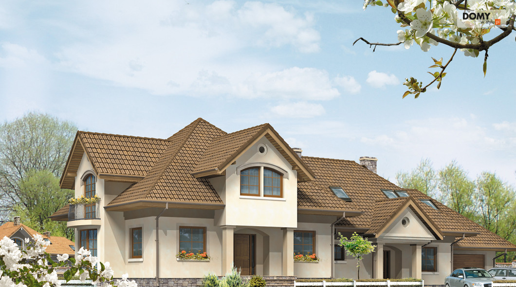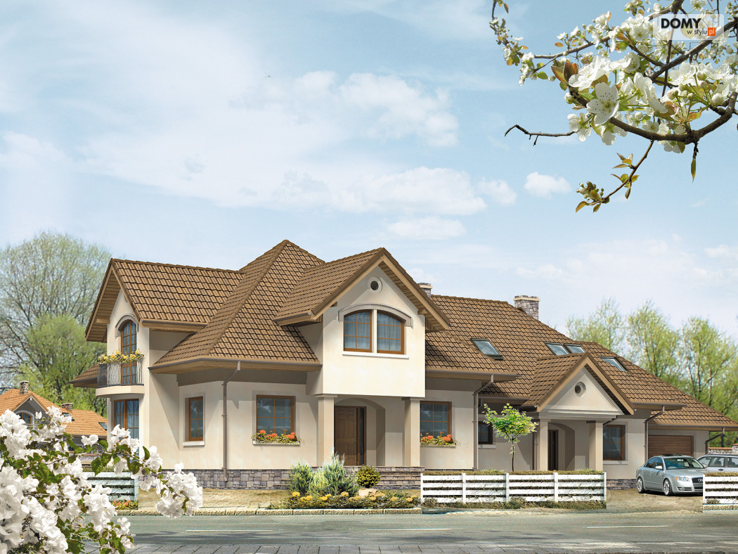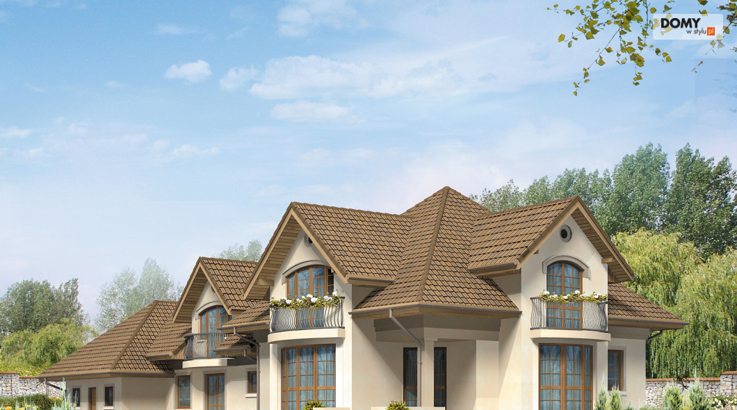 Budynek dwurodzinny dla 5- i 4-osobowych rodzin z indywidualnymi wejściami do mieszkań. W większym mieszkaniu na parterze znajduje się dodatkowy pokój-gabinet. Na poddaszu zlokalizowano trzy sypialnie i łazienkę z pralnią. W mniejszym mieszkaniu na parterze zaprojektowano reprezentacyjne schody na poddasze. Na poddaszu umieszczono dwie sypialnie i dodatkowy pokój.