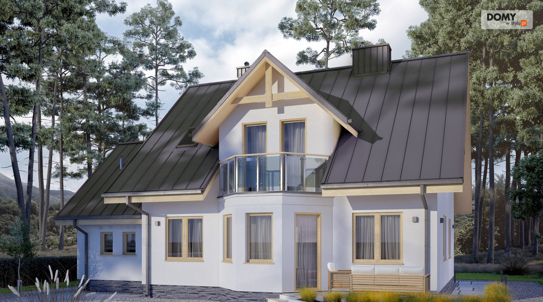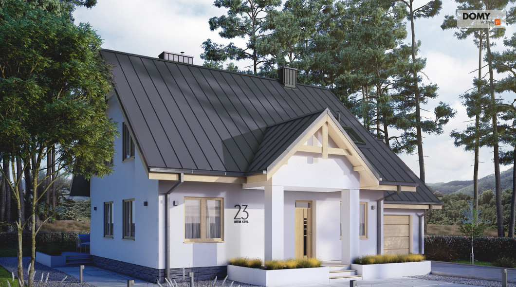 Dom jednorodzinny, parterowy z użytkowym poddaszem i garażem, niepodpiwniczony. Pomimo niewielkich gabarytów zapewnia wygodę 4 – 5-osobowej rodzinie.