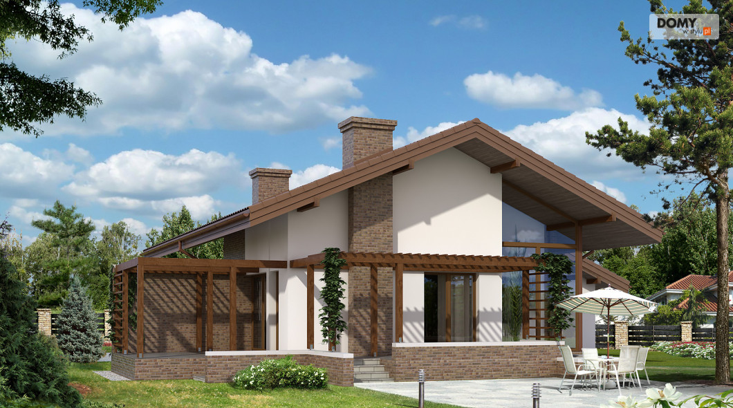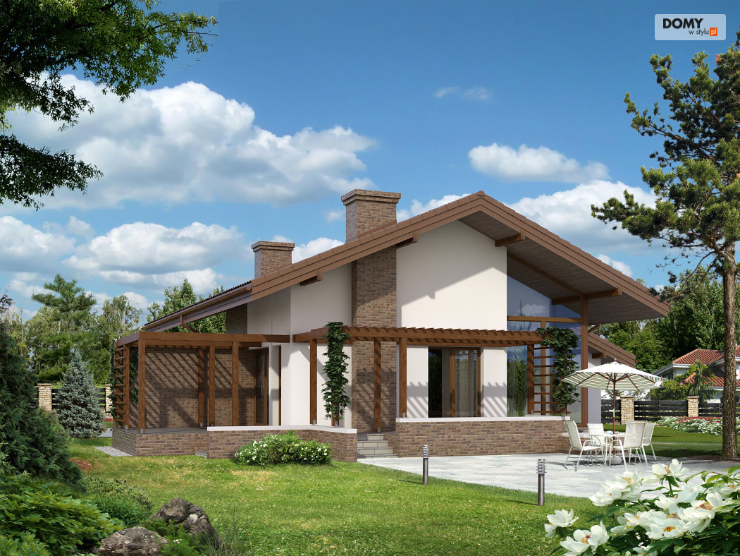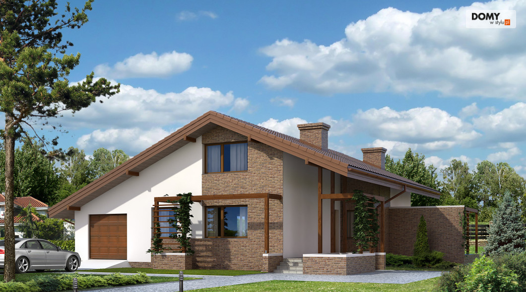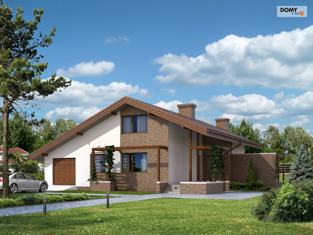 Jednorodzinny dom mieszkalny, parterowy z poddaszem użytkowym. Pełny program funkcjonalny zapewniający komfort 5-osobowej rodzinie. Wyraźny podział na część dzienną, nocną i gospodarczą. Wnętrze dodatkowo wzbogacone ciekawą antresolą oraz oranżerią. Zaprojektowano szereg murków, pergoli i przeszkleń współgrających z otoczeniem. Prosta bryła z niebanalnymi i nowatorskimi elewacjami.