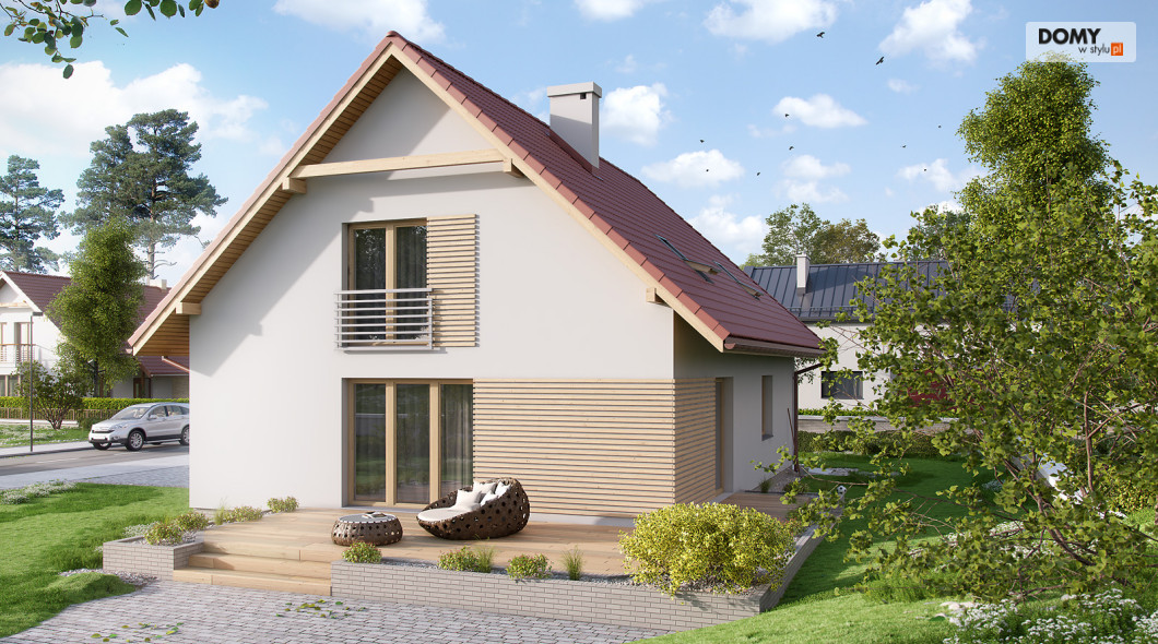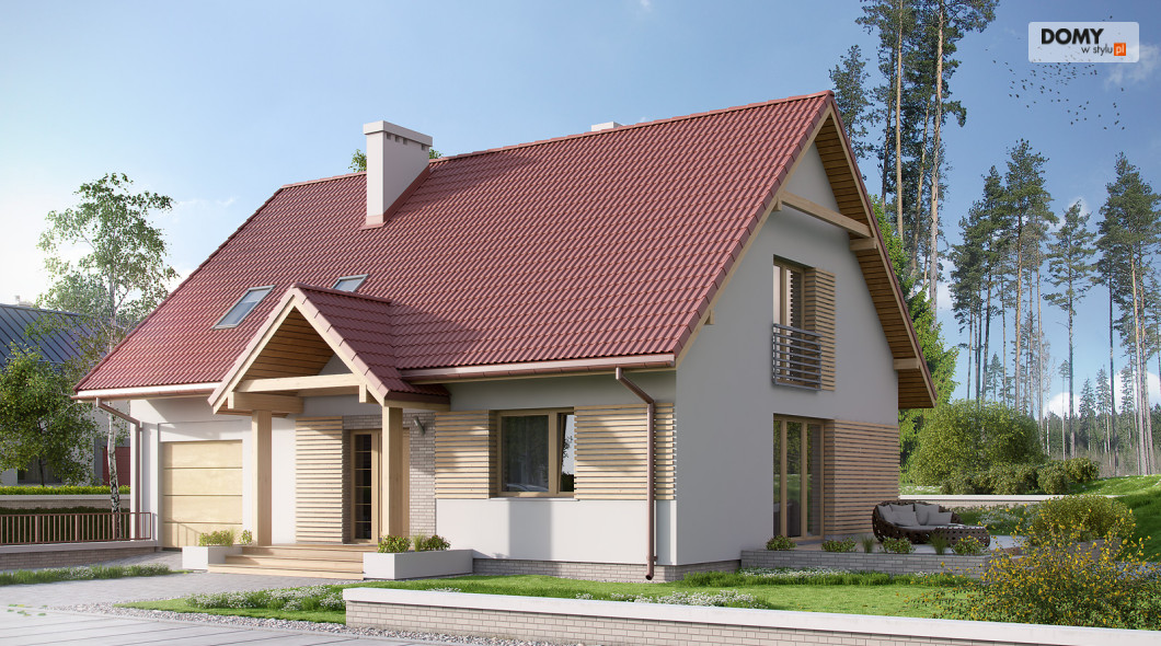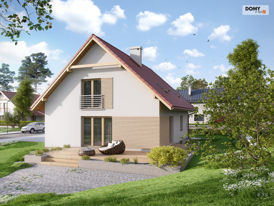 Dom jednorodzinny, niepodpiwniczony z użytkowym poddaszem zaprojektowany został dla 4-5-osobowej rodziny. Projekt charakteryzuje się wyraźnym podziałem na część dzienną, zlokalizowaną na parterze, oraz część nocną na poddaszu, składającą się z trzech sypialni oraz łazienki. Dodatkowo w sypialni rodziców oprócz garderoby znajduje się osobna łazienka. Pokoje są przestronne i dobrze doświetlone.