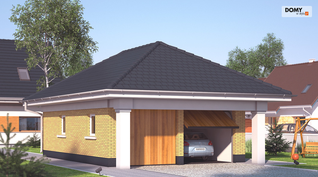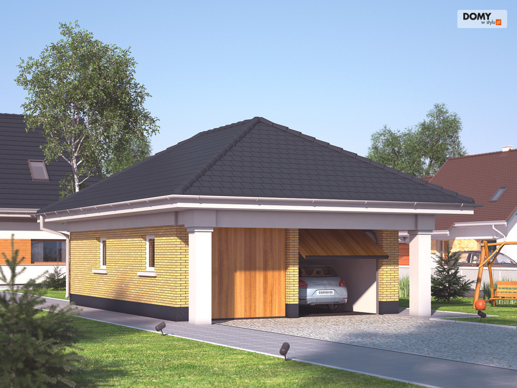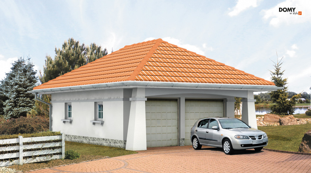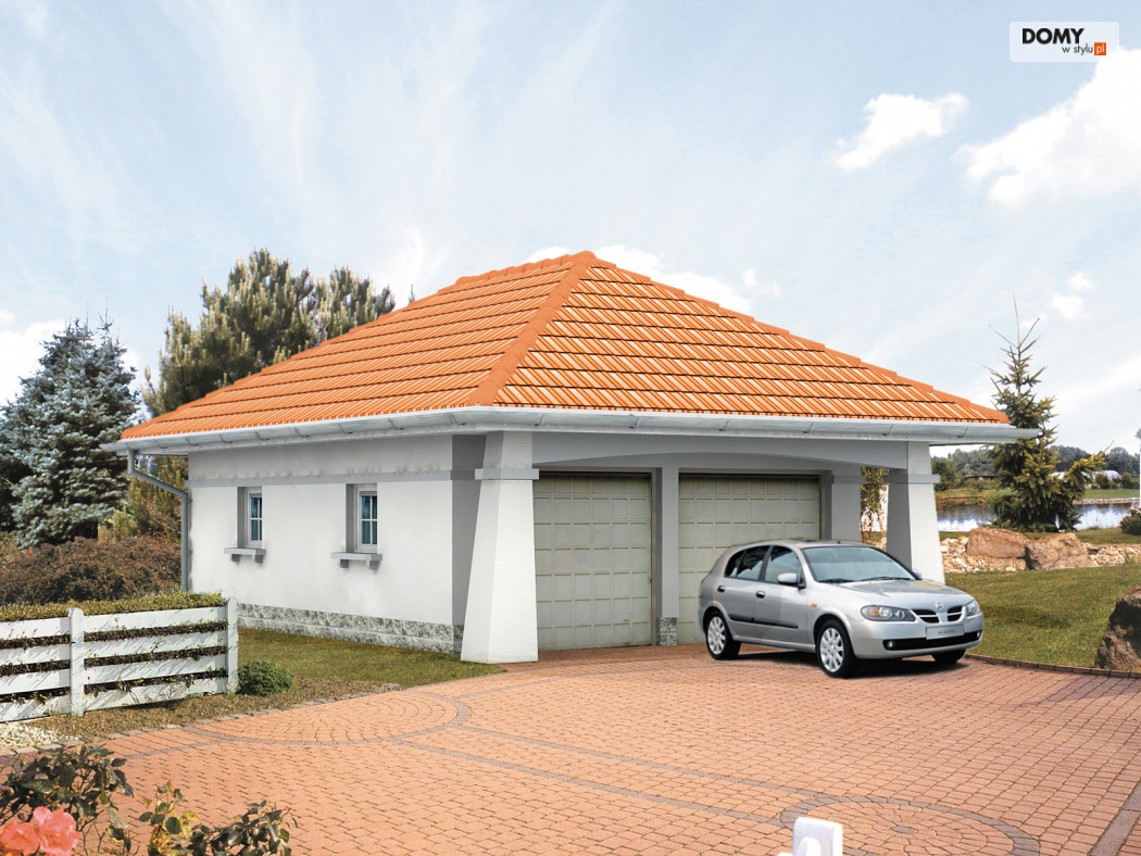 Garaż dwustanowiskowy, wolno stojący z pomieszczeniem gospodarczym.