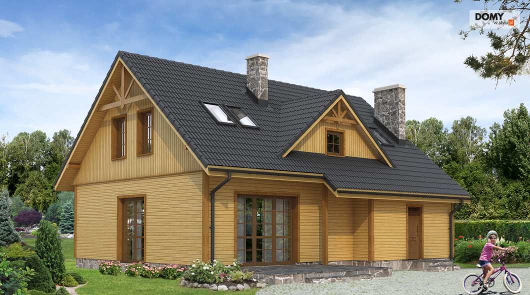 Dom jednorodzinny z poddaszem użytkowym. Na parterze zaprojektowano otwartą przestrzeń pokoju dziennego połączoną z kuchnią, dodatkowy pokój, kotłownię i łazienkę. Na poddaszu zlokalizowano trzy sypialnie oraz łazienkę.