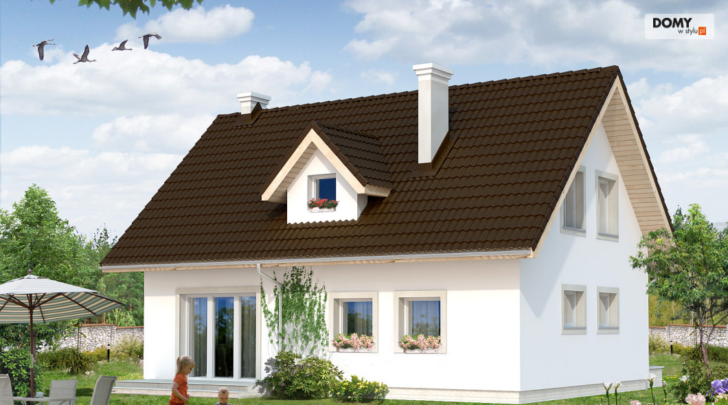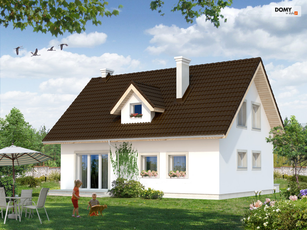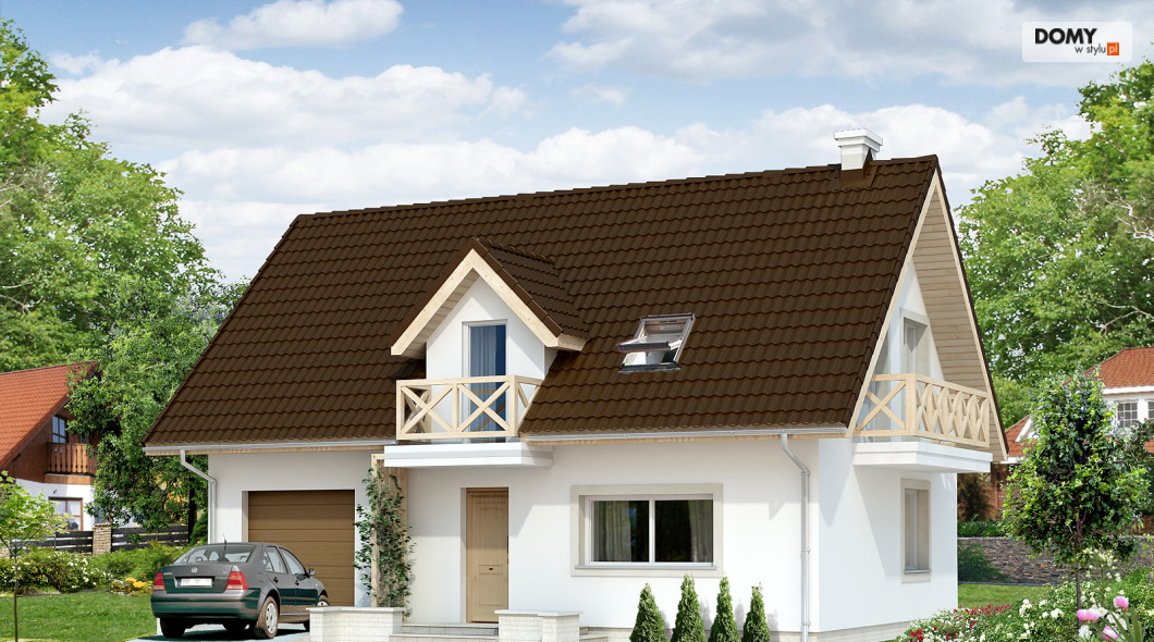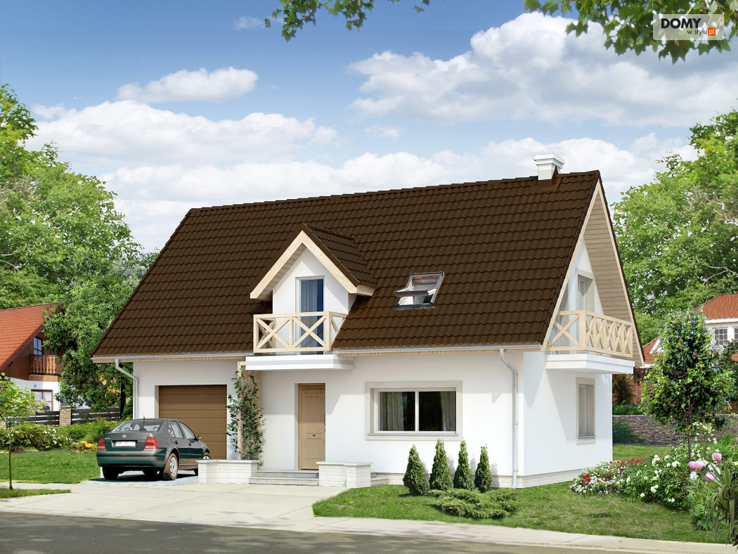 Mały dom jednorodzinny z użytkowym poddaszem i garażem w bryle budynku. Idealny dla niewielkiej rodziny. Dom zaprojektowany w technologii Multi-Comfort z zastosowaniem produktów marki Saint-Gobain łączy unikalne właściwości produktów z rozsądną ceną. Standard Multi-Comfort oznacza szereg korzyści, takich jak: niskie koszty ogrzewania, komfort termiczny, akustyczny, dobra jakość powierza, bezpieczeństwo przeciwpożarowe (klasa A1). Wszystko to jest możliwe za sprawą zastosowanych w projekcie sprawdzonych materiałów znanych i cenionych marek: Isover, Weber, Rigips, Glassolutions. Produkty Grupy Saint-Gobain są wytwarzane z naturalnych materiałów i posiadają deklaracje środowiskowe. W procesie eksploatacji budynki zaprojektowane w technologii Multi-Comfort posiadają niewielkie zapotrzebowanie na energię pierwotną. Więcej informacji o domach w standardzie Multi-Comfort: www.multi-comfort.pl