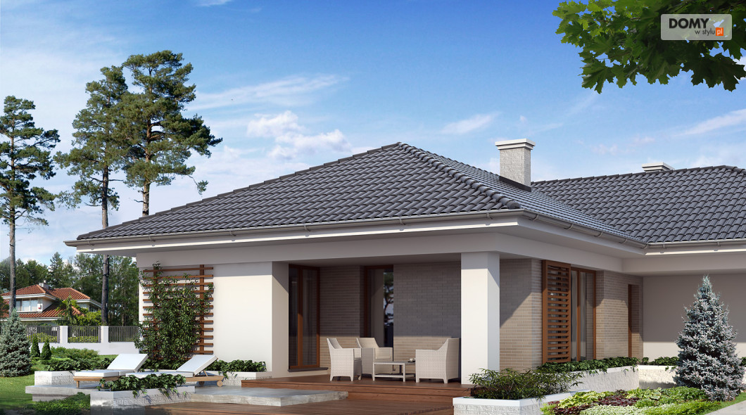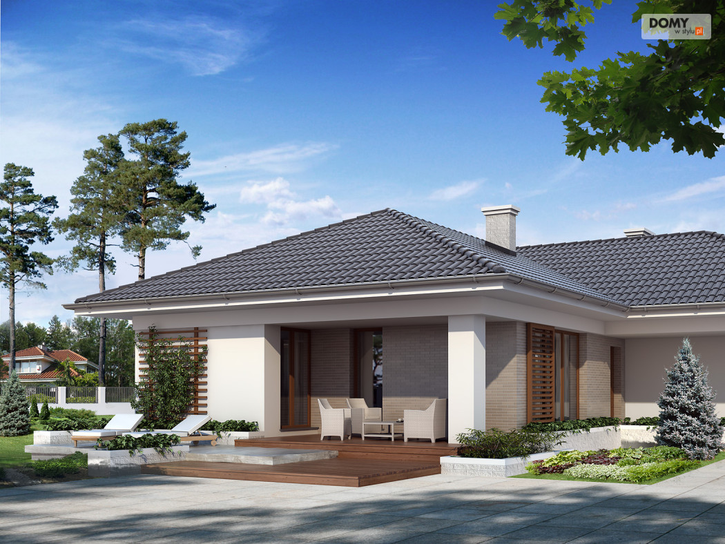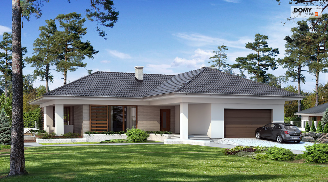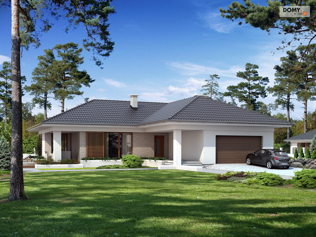 Jednorodzinny budynek mieszkalny, parterowy, niepodpiwniczony, przeznaczony dla 4-osobowej rodziny. W części dziennej przewidziano salon oraz kuchnię z jadalnią, w nocnej trzy sypialnie z łazienką, w gospodarczej garaż, kotłownię, wc oraz garderobę. Budynek został utrzymany w nowoczesnej stylistyce.