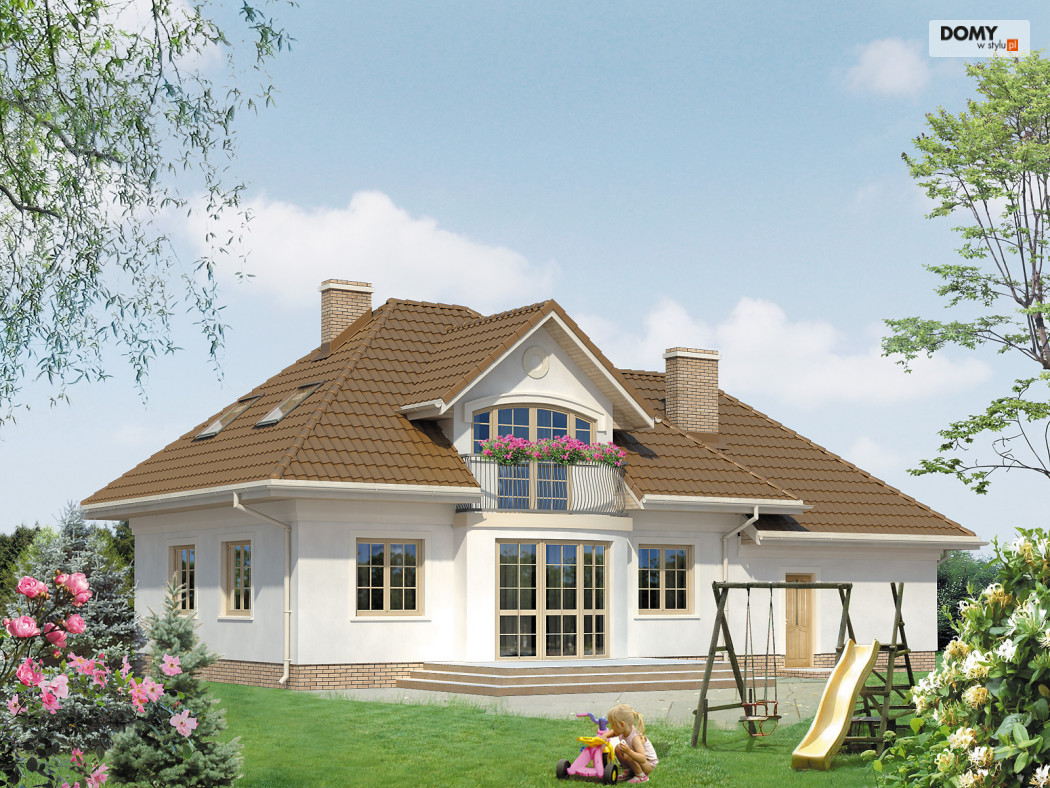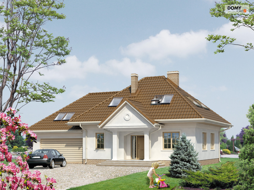 Budynek mieszkalny, jednorodzinny z użytkowym poddaszem i dwustanowiskowym garażem. Na parterze znajduje się strefa dzienna, na poddaszu trzy pokoje i łazienka.