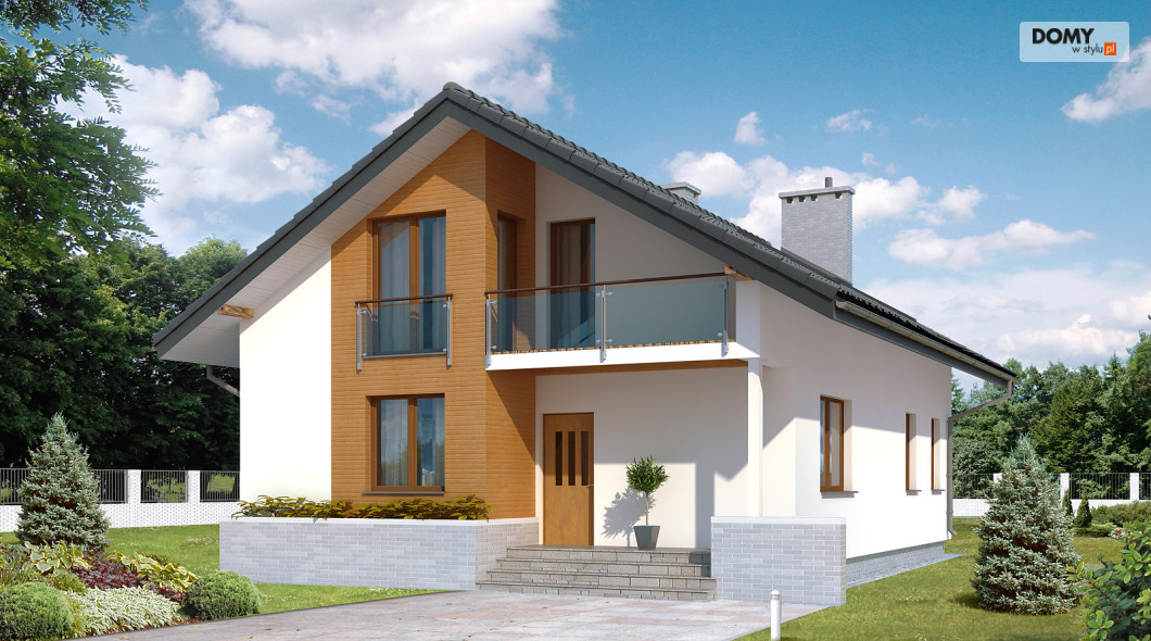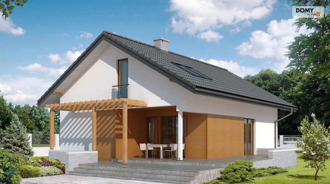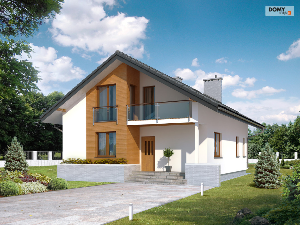 Prosty dom o klasycznej bryle i o nowoczesnych elewacjach. Zawiera w sobie pełny program funkcjonalny dla 4 – 5-osobowej rodziny. Na parterze zaprojektowano dodatkowy pokój. Atutem projektu jest duży zadaszony taras.