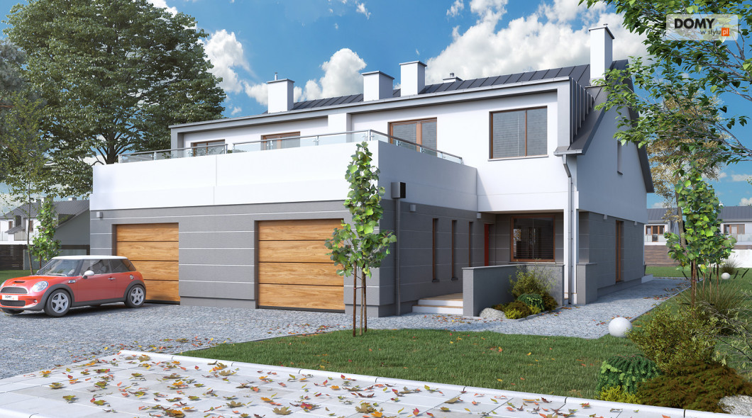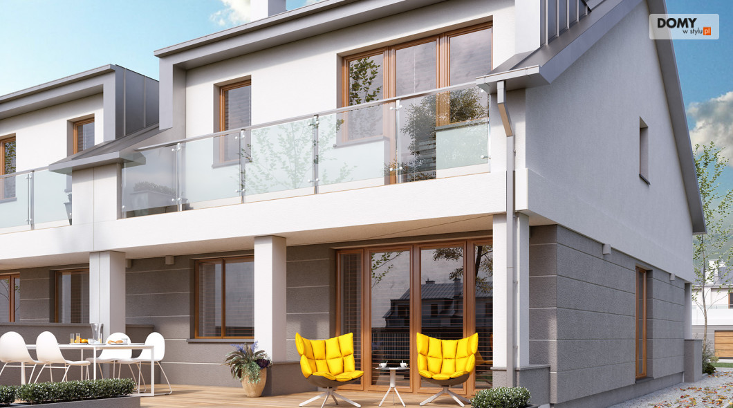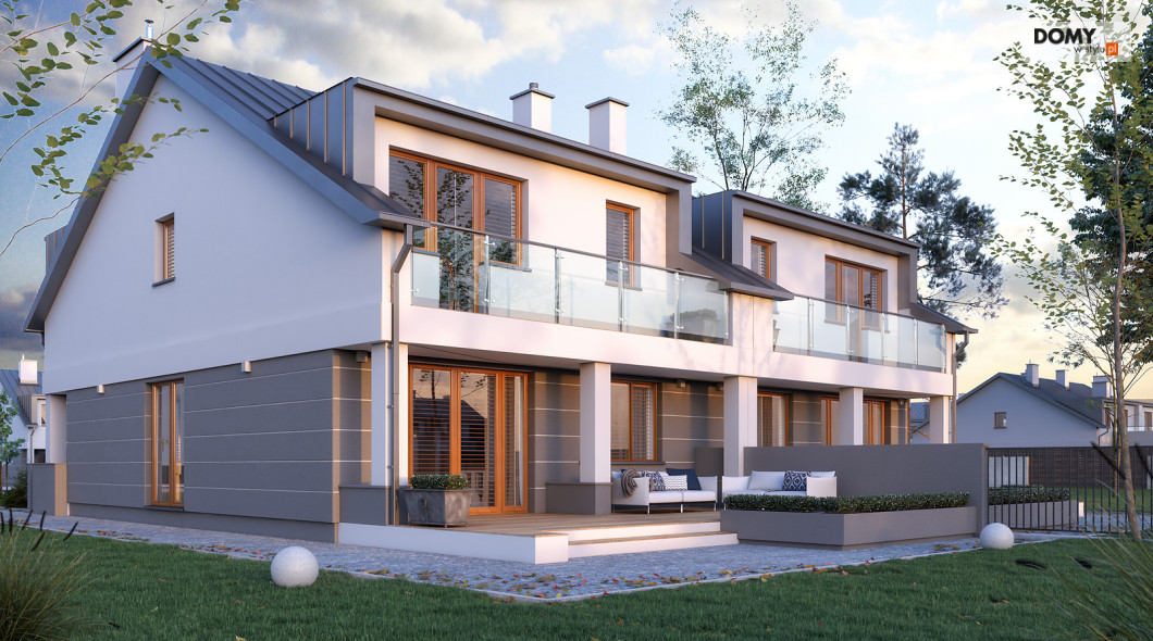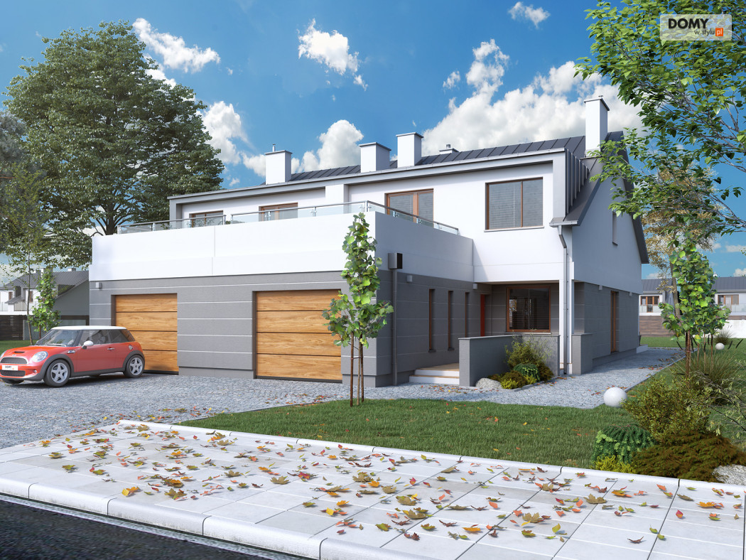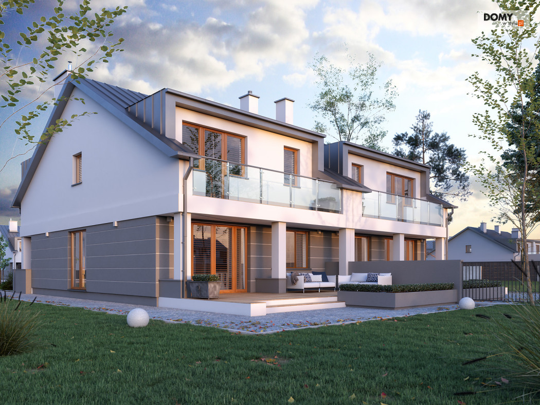 Cyklamen to projekt domu w zabudowie bliźniaczej z garażem jednostanowiskowym wysuniętym od frontu budynku. Powierzchnia użytkowa budynku pozwala na funkcjonalny rozkład pomieszczeń. Dwie połówki domu przedstawiają nieco odmienny układ pomieszczeń. Na parterze zaprojektowano otwarty układ wnętrz, na który składa się przestronny salon połączony z jadalnią oraz częściowo otwartą kuchnią. Na parterze znajduje się także łazienka pod schodami oraz kotłownia. Wymiary obu tych pomieszczeń można dowolnie kształtować, w zależności od indywidualnych potrzeb. Na poddaszu znajdują się cztery sypialnie oraz ogólnodostępna łazienka. W drugiej połowie znajduje się nieco inny rozkład pomieszczeń na poddaszu. Zaprojektowano tam dwie mniejsze sypialnie z wyjściem na taras nad garażem, łazienkę oraz apartament gospodarzy z prywatną łazienką oraz garderobą. Uzupełnieniem układu funkcjonalnego w obu połówkach jest wydzielona garderoba z wejściem z przedsionka oraz garaż.