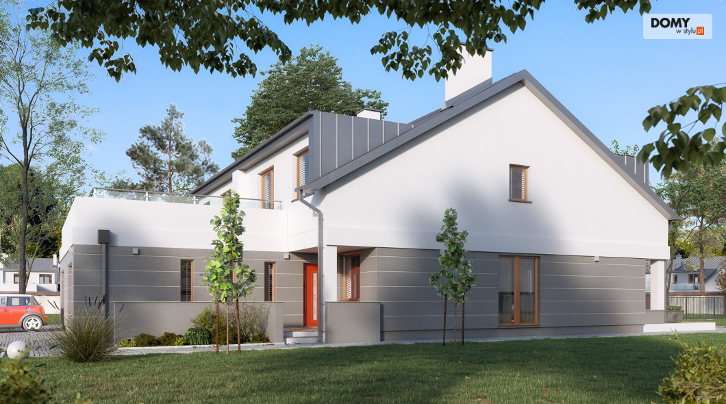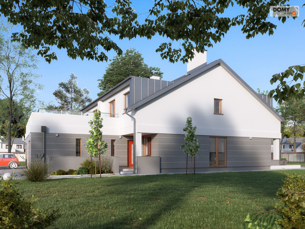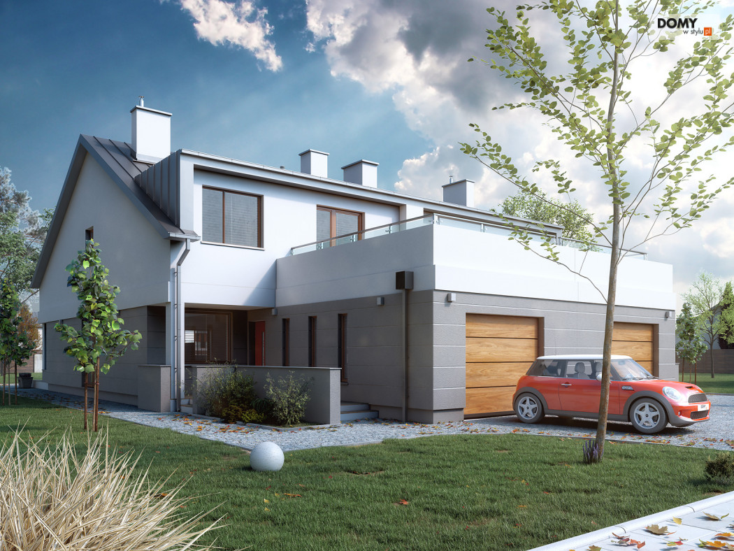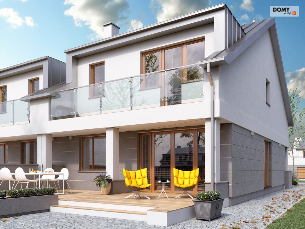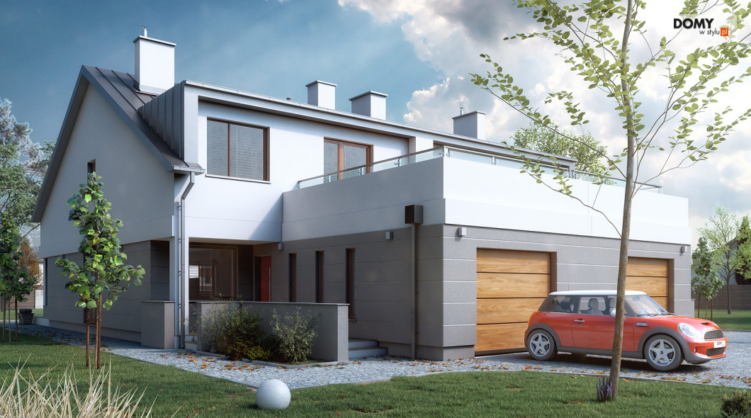 Cyklamen to projekt domu w zabudowie bliźniaczej z garażem jednostanowiskowym wysuniętym od frontu budynku. Powierzchnia użytkowa budynku pozwala na funkcjonalny rozkład pomieszczeń. Dwie połówki domu przedstawiają nieco odmienny układ pomieszczeń. Na parterze zaprojektowano otwarty układ wnętrz, na który składa się przestronny salon połączony z jadalnią oraz częściowo otwartą kuchnią. Na parterze znajduje się także łazienka pod schodami oraz kotłownia. Wymiary obu tych pomieszczeń można dowolnie kształtować, w zależności od indywidualnych potrzeb. Na poddaszu znajdują się cztery sypialnie oraz ogólnodostępna łazienka. W drugiej połowie znajduje się nieco inny rozkład pomieszczeń na poddaszu. Zaprojektowano tam dwie mniejsze sypialnie z wyjściem na taras nad garażem, łazienkę oraz apartament gospodarzy z prywatną łazienką oraz garderobą. Uzupełnieniem układu funkcjonalnego w obu połówkach jest wydzielona garderoba z wejściem z przedsionka oraz garaż.
