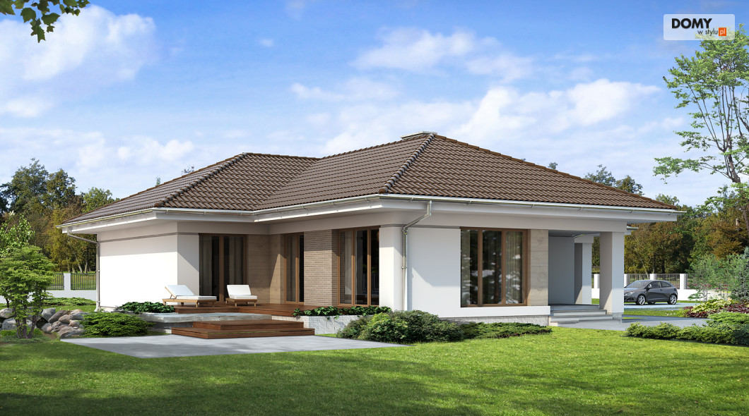 Jednorodzinny dom mieszkalny, parterowy, przeznaczony dla 4-osobowej rodziny. Wyraźny podział na część dzienną: kuchnia ze spiżarnią i salon z jadalnią; część nocną: trzy sypialnie z łazienką oraz część gospodarczą: wc, kotłownia i dwustanowiskowy garaż. Ciekawe, nowoczesne elewacje. Duży, przestronny taras. Dom zaprojektowany w technologii Multi-Comfort z zastosowaniem produktów marki Saint-Gobain łączy unikalne właściwości produktów z rozsądną ceną. Standard Multi-Comfort oznacza szereg korzyści, takich jak: niskie koszty ogrzewania, komfort termiczny, akustyczny, dobra jakość powierza, bezpieczeństwo przeciwpożarowe (klasa A1). Wszystko to jest możliwe za sprawą zastosowanych w projekcie sprawdzonych materiałów znanych i cenionych marek: Isover, Weber, Rigips, Glassolutions. Produkty Grupy Saint-Gobain są wytwarzane z naturalnych materiałów i posiadają deklaracje środowiskowe. W procesie eksploatacji budynki zaprojektowane w technologii Multi-Comfort posiadają niewielkie zapotrzebowanie na energię pierwotną. Więcej informacji o domach w standardzie Multi-Comfort: www.multi-comfort.pl