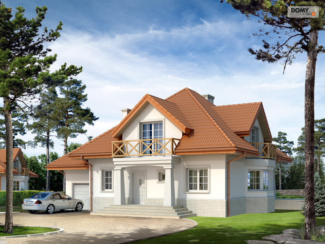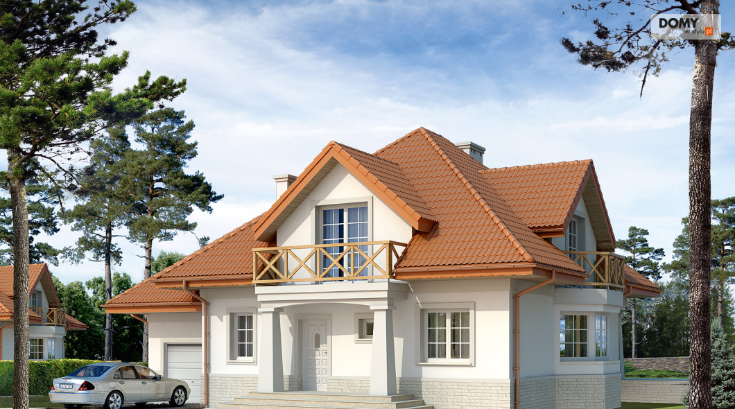 Dom mieszkalny jednorodzinny w użytkowym poddaszem i jednostanowiskowym garażem. Dm przeznaczony dla 5 - 6-osobowej rodziny. Na parterze znajduje się część dzienna oraz dodatkowy pokój (o funkcji sypialni bądź gabinetu). Na poddaszu zaprojektowano część nocną: cztery sypialnie, łazienkę, pralnię oraz garderobę.