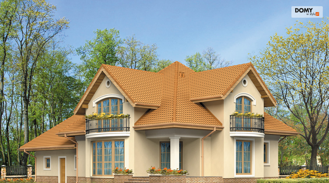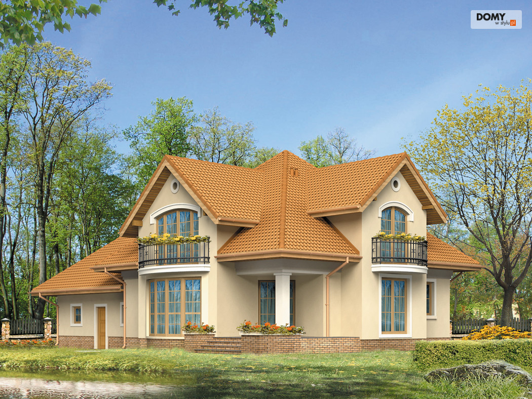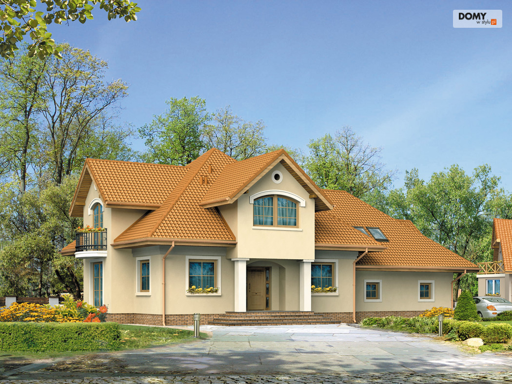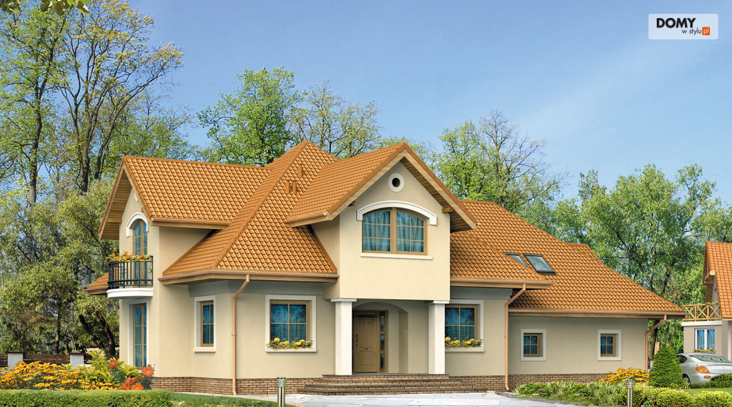 Dom mieszkalny, jednorodzinny, z użytkowym poddaszem, przeznaczony dla 4 – 5-osobowej rodziny. Na parterze zaprojektowano dodatkowy pokój – gabinet. Z pokoju dziennego, otwartego poprzez duże okno na ogród, zaprojektowano wyjście na zadaszony taras. Na poddaszu zlokalizowano strefę nocną. Zaprojektowano tam trzy przestronne sypialnie i dużą łazienkę. Poprzecznie usytuowanym wjazdem do garażu w stosunku do wejścia.