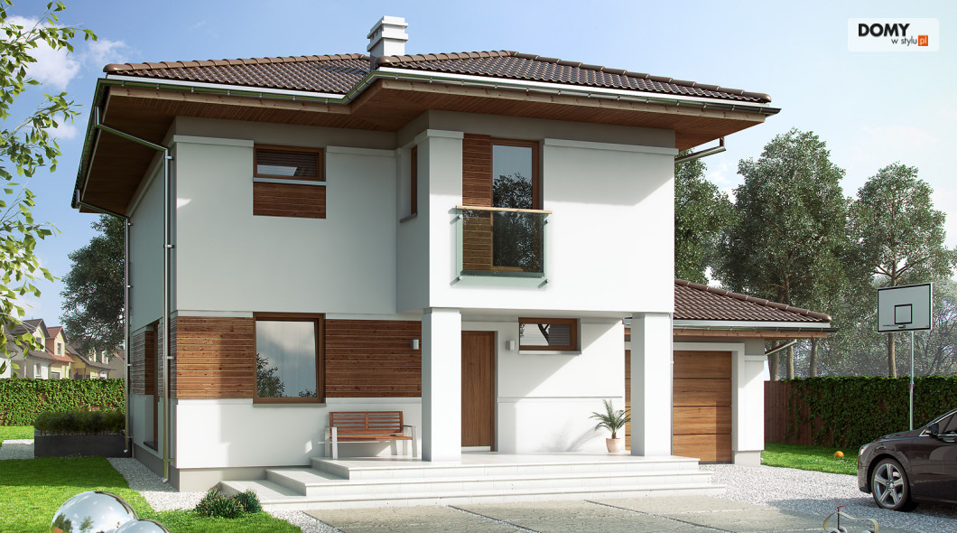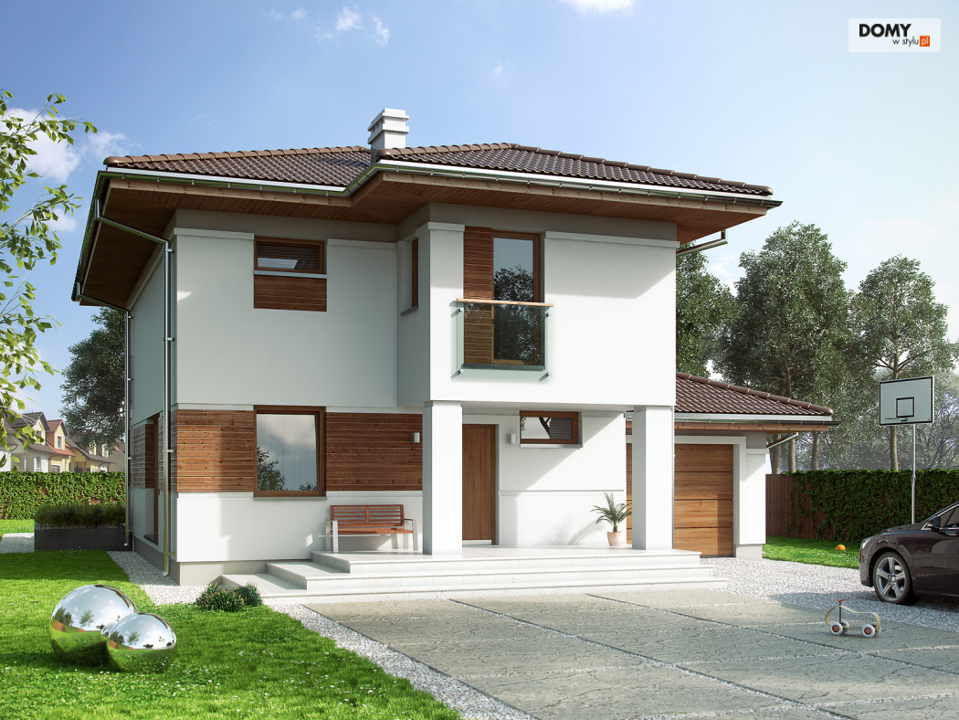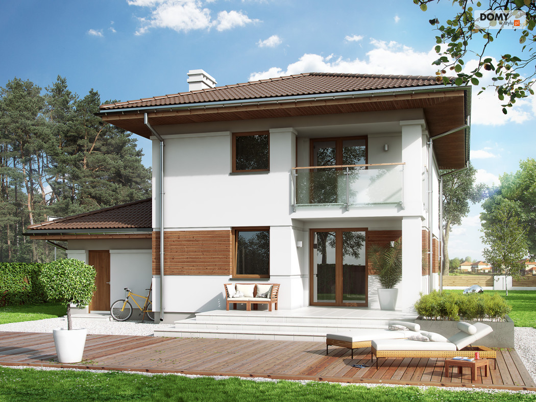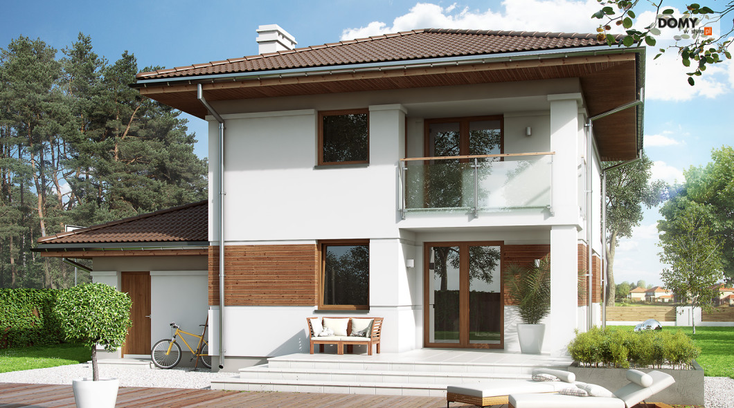 Pinia 2 to dwukondygnacyjny dom dla 4 - 5-osobowej rodziny z garażem jednostanowiskowym. Na parterze zaprojektowano bardzo funkcjonalną przestrzeń z aneksem kuchennym i częścią jadalną, połączoną z ogrodem szklaną witryną. Na parterze znajduje się również klimatyczny salon z kominkiem oraz wc. Garaż z kotłownią są połączone z częścią mieszkalną wewnętrznym wejściem. Na piętrze znajdują się trzy sypialnie, łazienka oraz pralnia z garderobą. Dom charakteryzuje się nowoczesnym wyglądem i prostą bryłą na rzucie prostokąta.