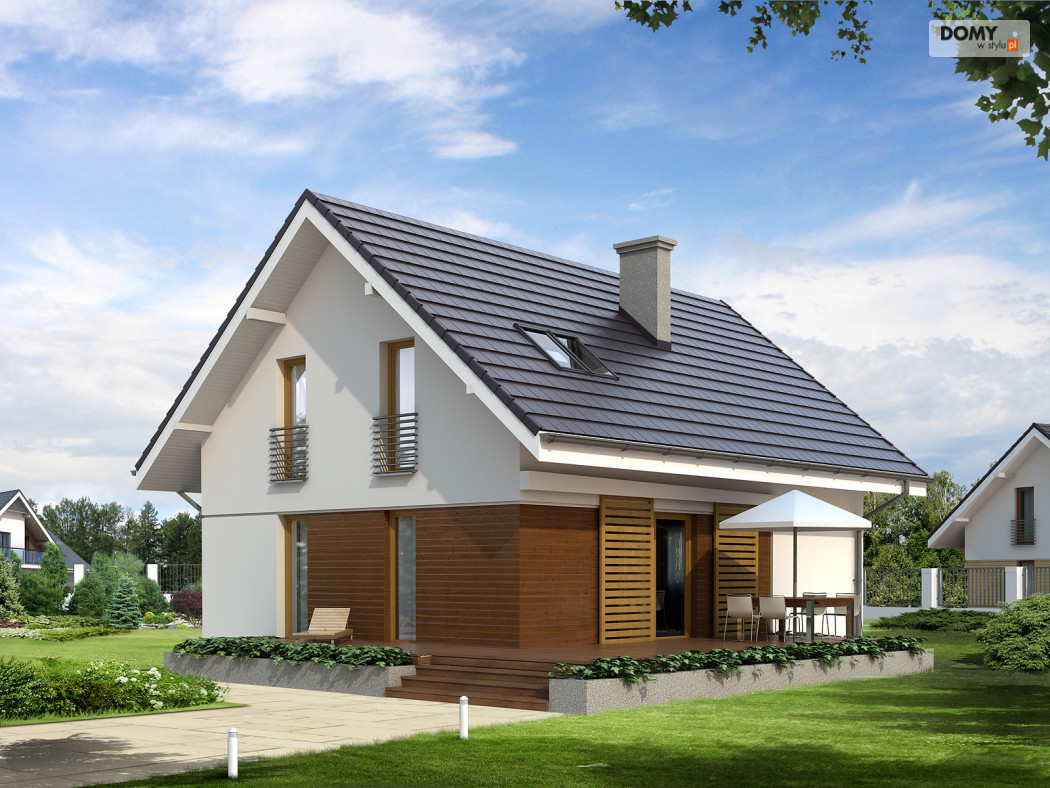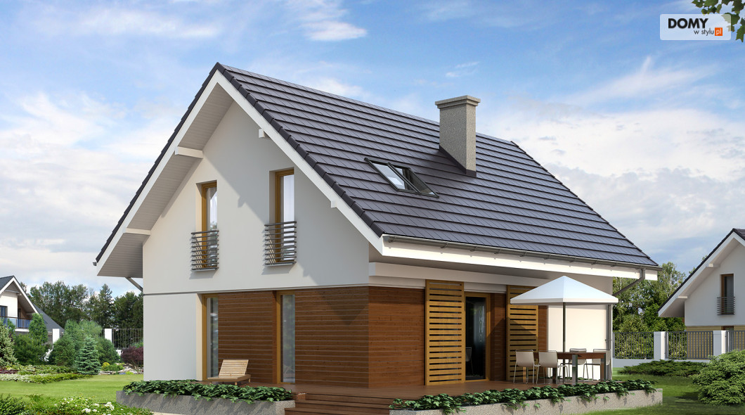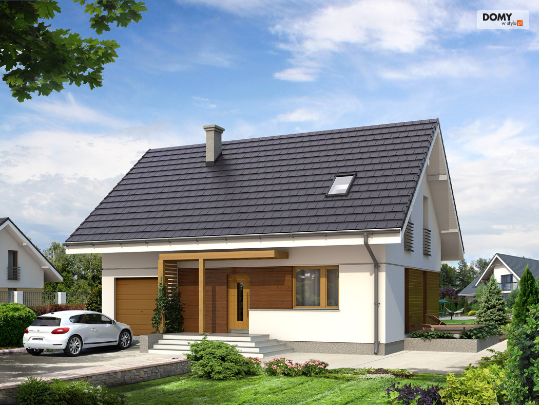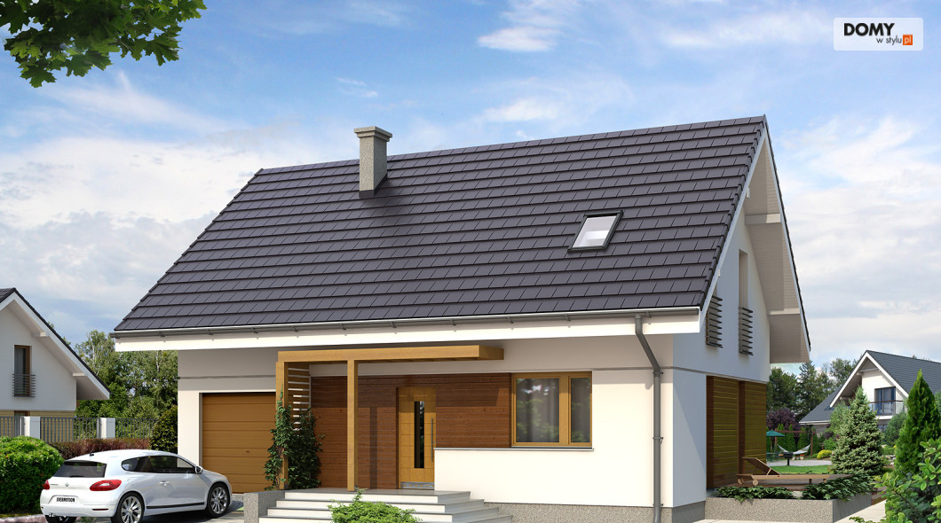 Optymalny dom dla 4-osobowej rodziny. Prosta klasyczna bryła współgra tu z nowoczesnymi elewacjami. Wyraźny podział na część: dzienną, nocną i gospodarczą.
