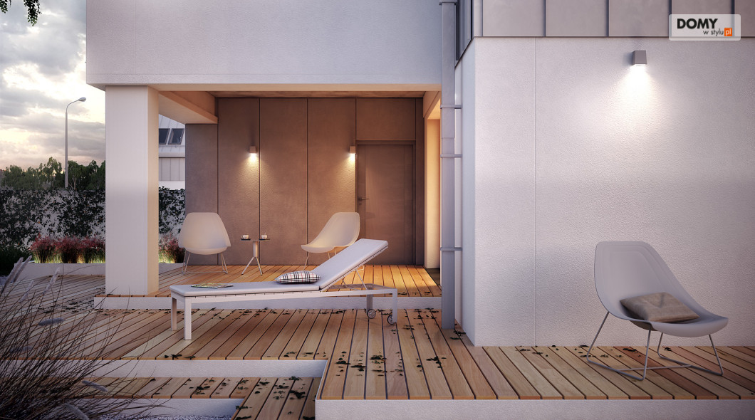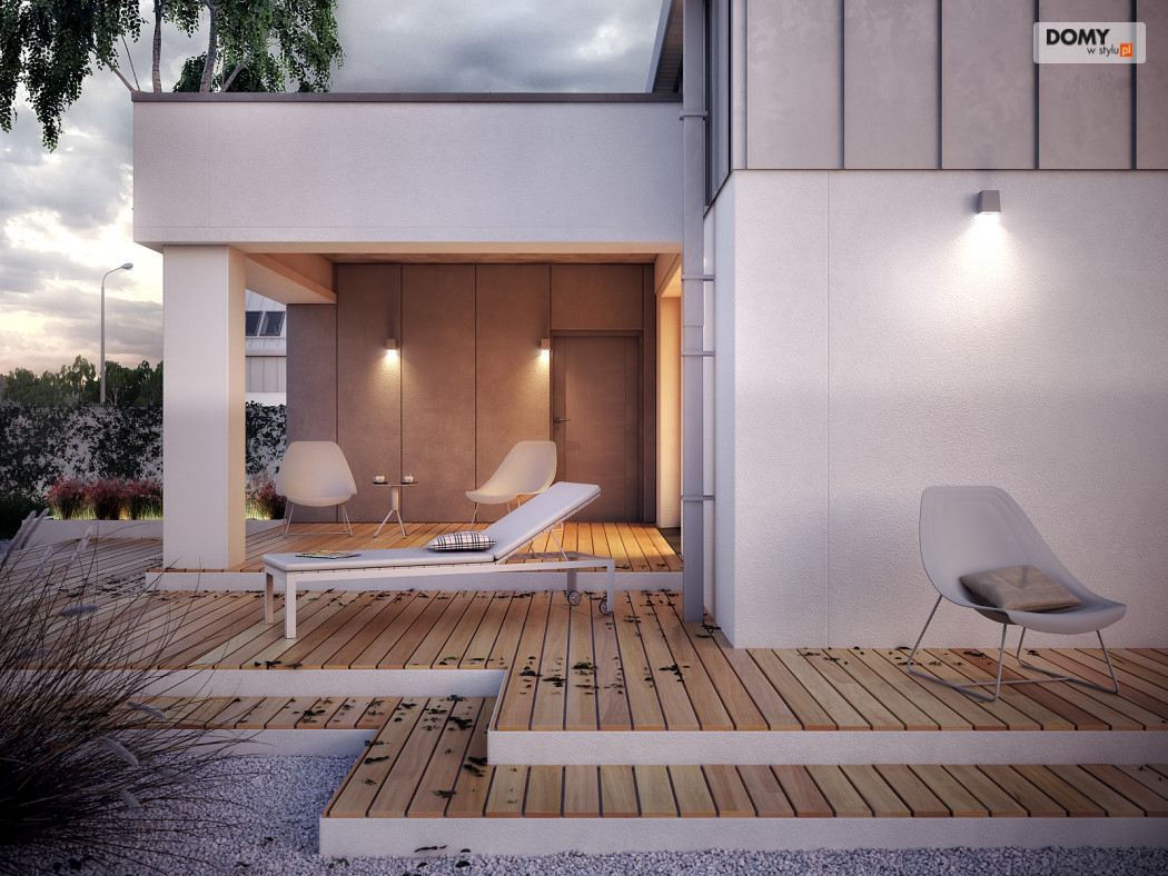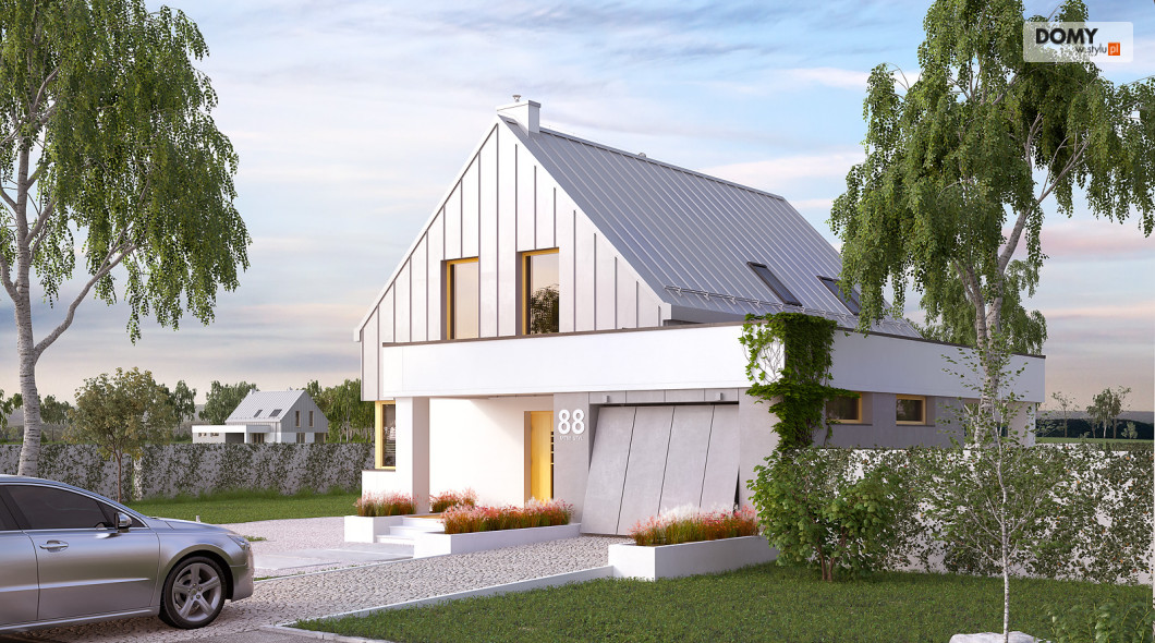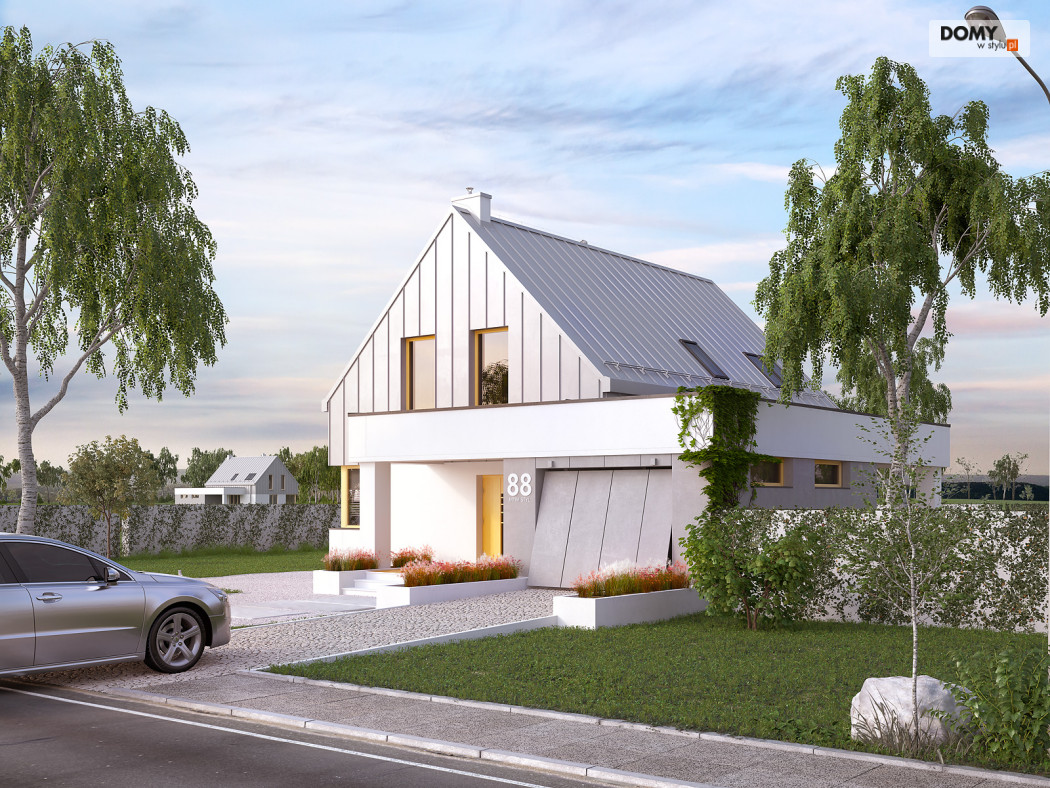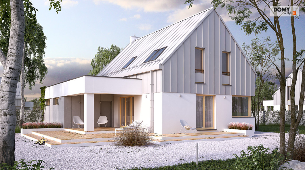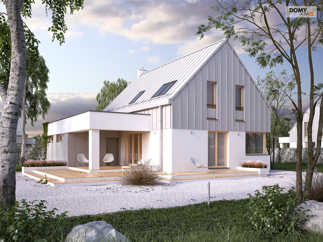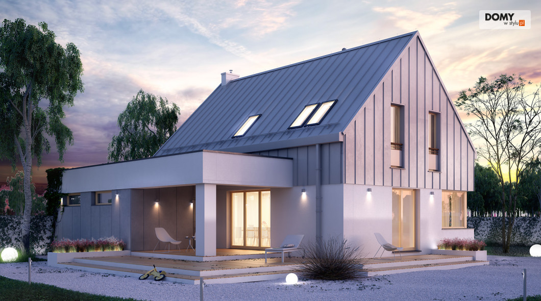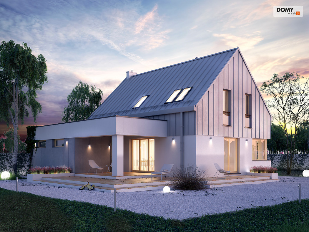 Dom został zaprojektowany dla 4 osobowej rodzinie. Myślą przewodnią podczas procesu tworzenia była prostota oraz nowoczesność ze szczyptą tradycji, która finalnie miała się złożyć na niebanalną formę przeznaczoną dla osób lubiących wyróżniać się z tłumu. Wygodę użytkowania części dziennej umożliwia otwarta przestrzeń w salonie i jadalni. Dodatkowym atutem projektu jest duży i zadaszony taras oraz wydzielona pralnia i garderoba na poddaszu.
