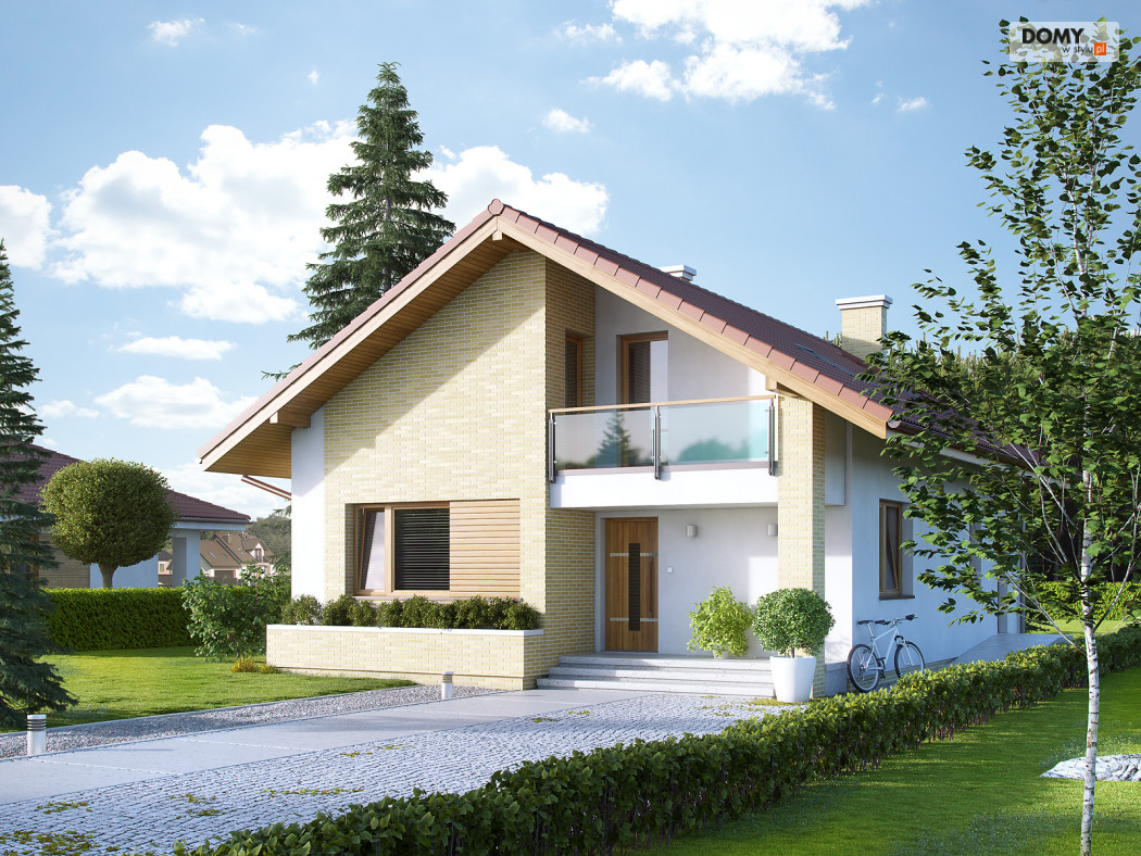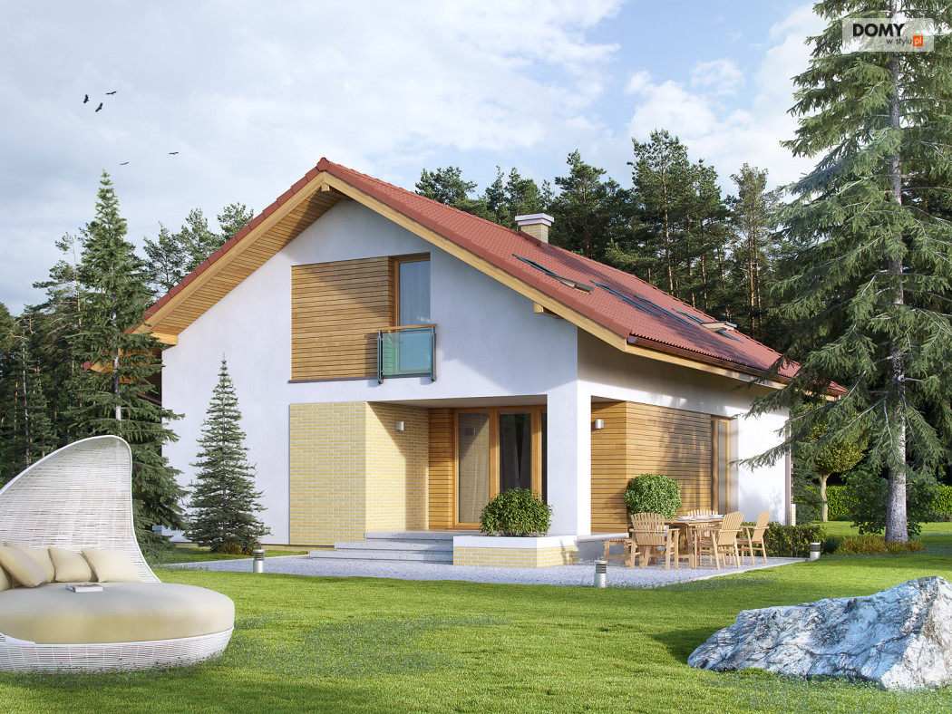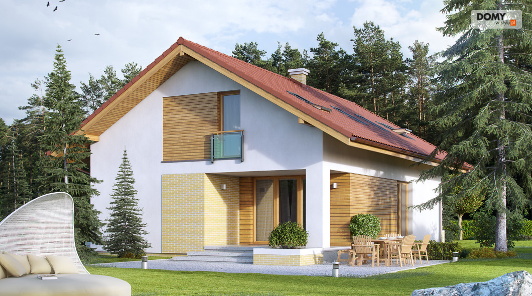 Jednorodzinny dom parterowy z użytkowym poddaszem. Bogaty układ funkcjonalny w nim zaprojektowany, został przystosowany dla potrzeb 4-osobowej rodziny. Na parterze w części dziennej przewidziano: salon z jadalnią, kuchnię ze spiżarnią oraz gabinet, w części gospodarczej kotłownię i łazienkę. Na poddaszu w części nocnej zaprojektowano 3 sypialnie, łazienkę oraz garderobę. W tym projekcie prosta, klasyczna bryła idealnie współgra z nowoczesnymi elewacjami.