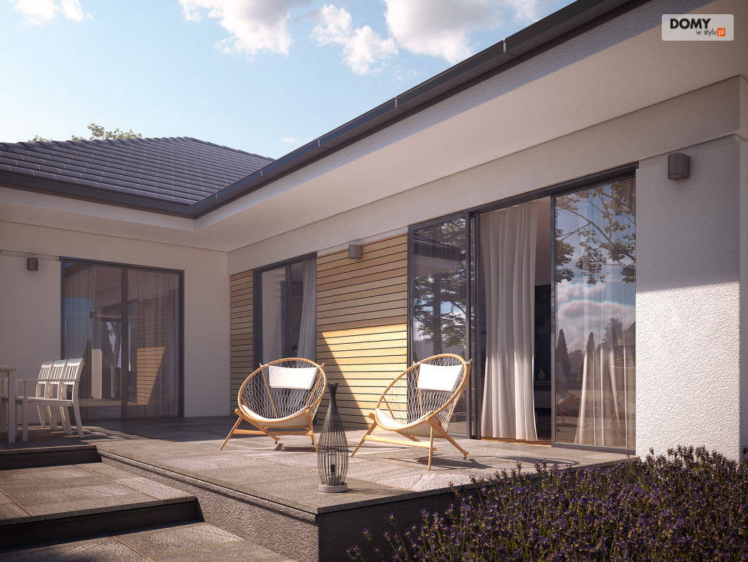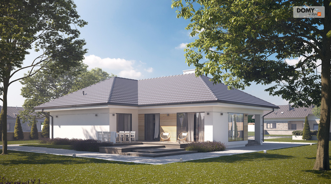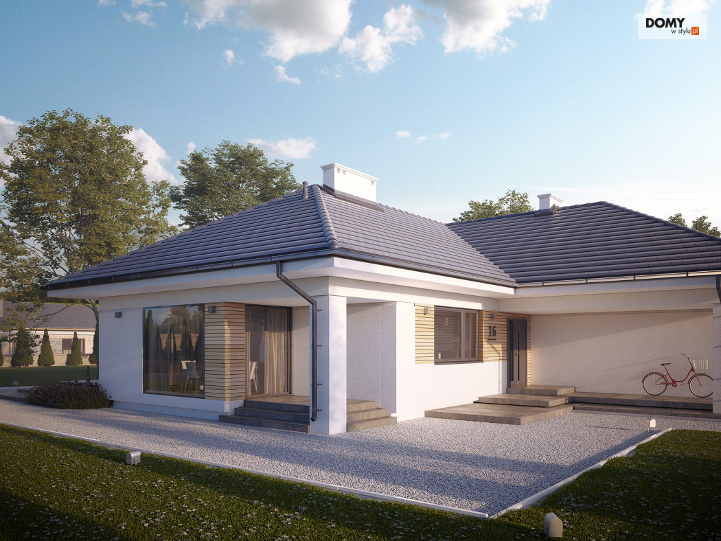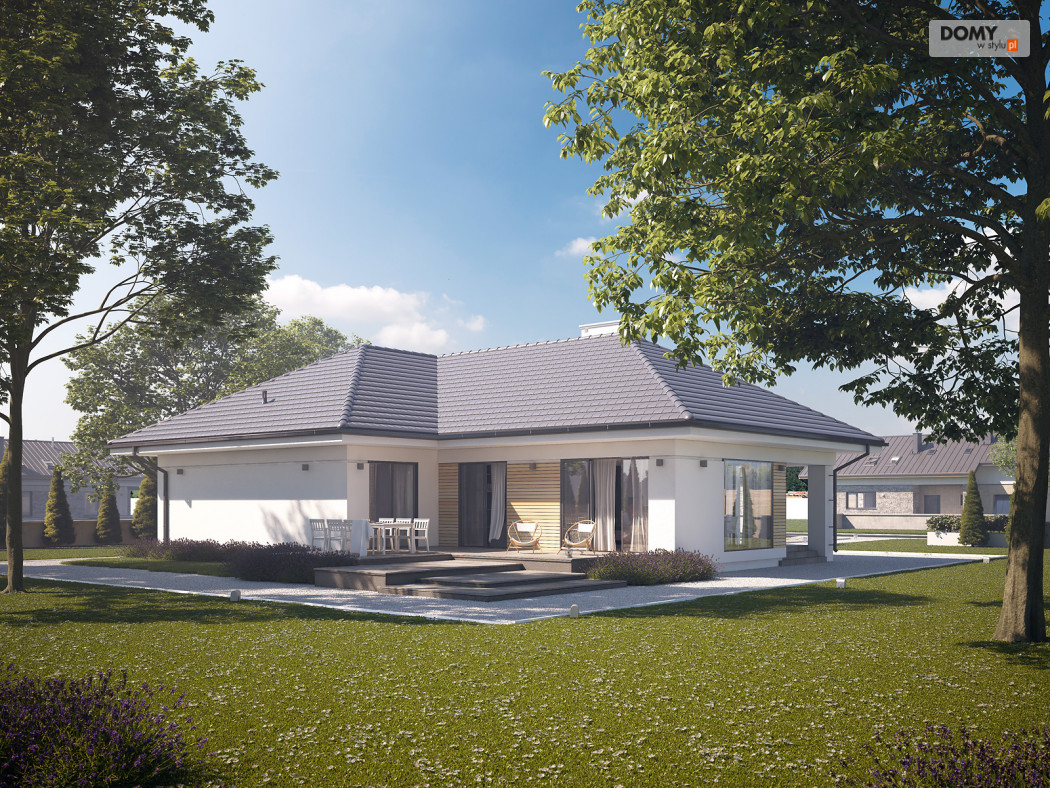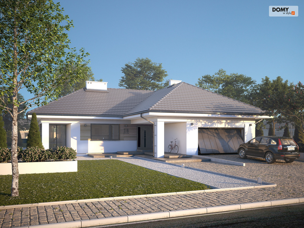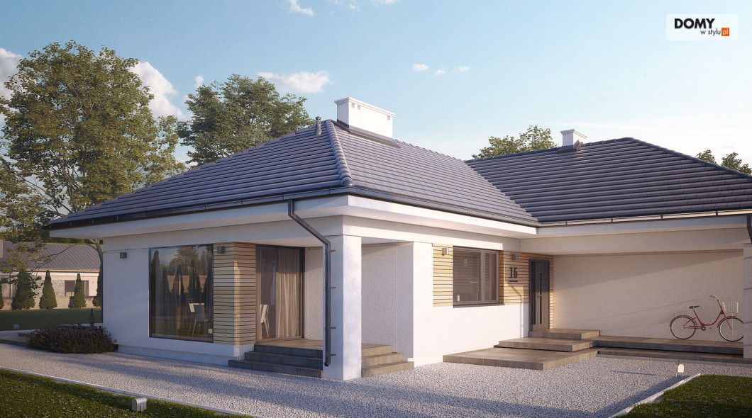 Ambrozja 14 to projekt domu parterowego z częściowym podpiwniczeniem. W projekcie widoczny jest wyraźny podział na część dzienną, nocną i gospodarczą. W części dziennej znajduje się kuchnia ze spiżarnią oraz salon z jadalnią, która została wyeksponowana dzięki dużym przeszkleniom. Z salonu oraz jadalni znajduje się wyjście na rozległy taras w części ogrodowej. Od frontu budynku zaprojektowano drugi zadaszony taras, który umożliwia spożywanie posiłków na świeżym powietrzu. Na część nocną składają się trzy sypialnie oraz rodzinna łazienka. Uzupełnieniem układu funkcjonalnego jest dwustanowiskowy garaż oraz pomieszczenia gospodarcze w piwnicy.