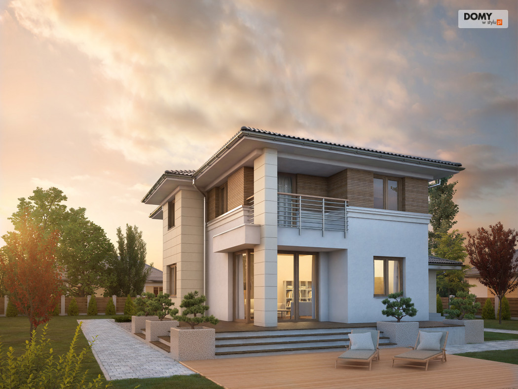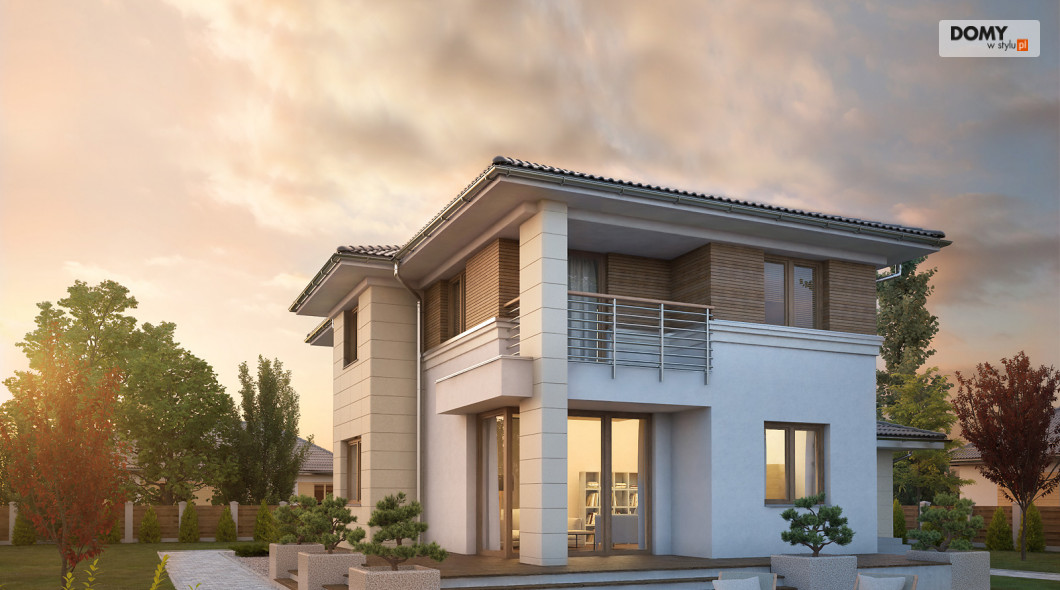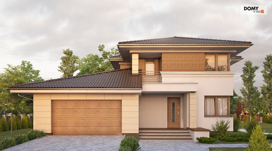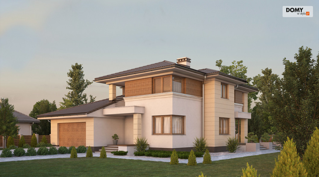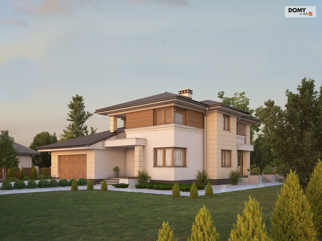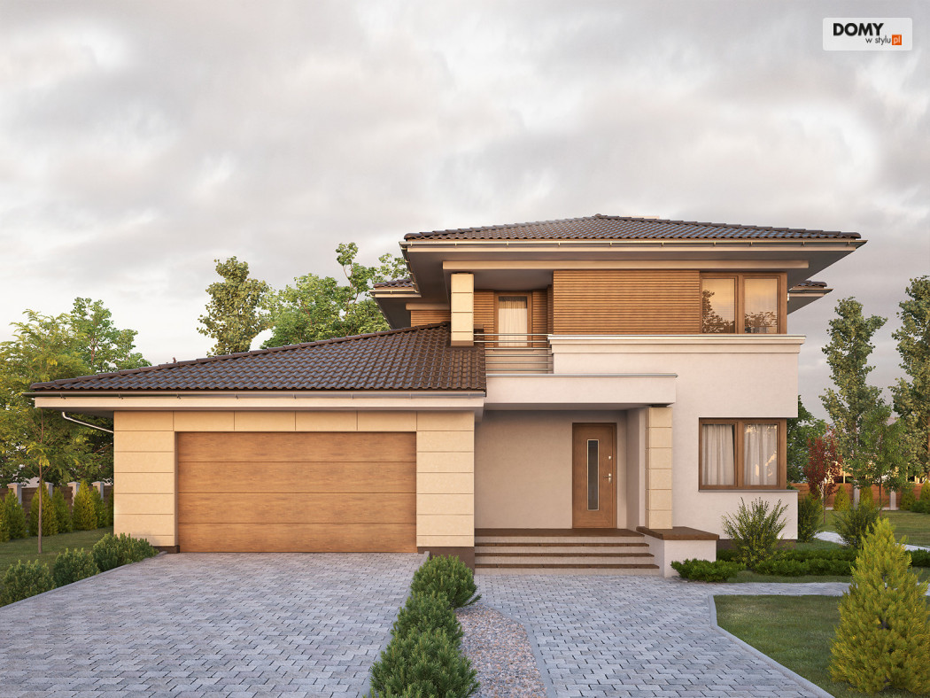 Budynek mieszkalny jednorodzinny w konstrukcji murowanej, wolno stojący, piętrowy, częściowo podpiwniczony. W piwnicy znajduje się kotłownia, pralnia oraz pomieszczenie gospodarcze. Na parterze zaprojektowano pokój dzienny połączony z kuchnią, dodatkowy pokój, wc, pomieszczenie gospodarcze i dwustanowiskowy garaż. Na piętrze zaprojektowano trzy sypialnie łazienkę oraz garderobę. Bryła budynku przykryta wielospadowym dachem.