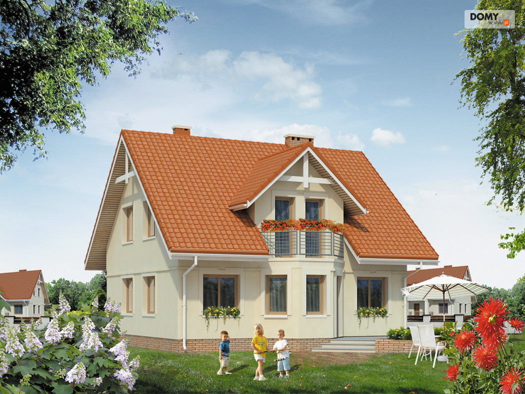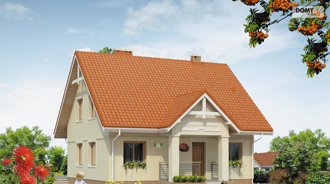 Dom jednorodzinny, wolno stojący, parterowy z użytkowym poddaszem. Pomimo niewielkich gabarytów zapewnia wygodę 4 – 5-osobowej rodzinie. Budynek o zwartej bryle z tradycyjnie ukształtowanym dachem.