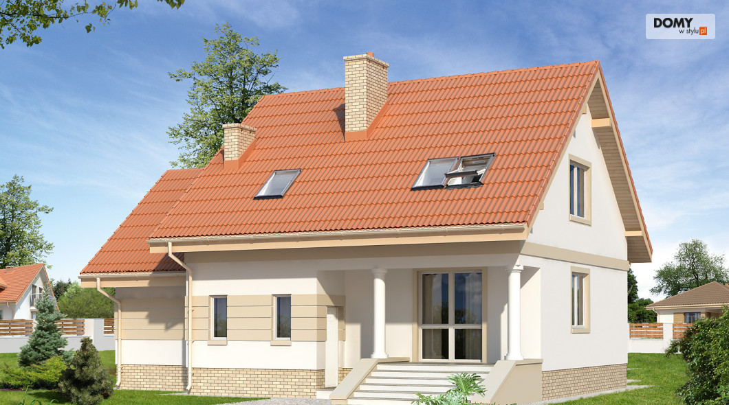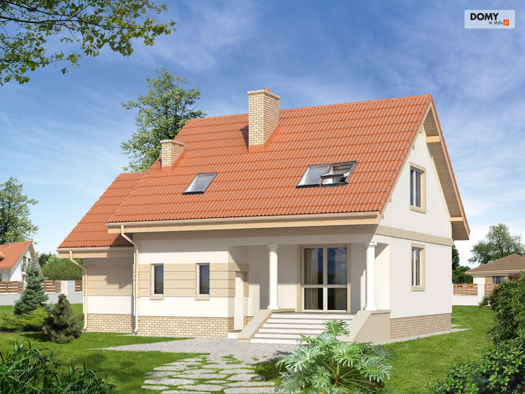 Budynek o zwartej bryle, przeznaczony dla 4 – 5-osobowej rodziny. Na parterze część dzienna, dodatkowy pokój oraz część gospodarcza z garażem. Na poddaszu trzy wygodne pokoje, garderoba oraz przestronna łazienka.