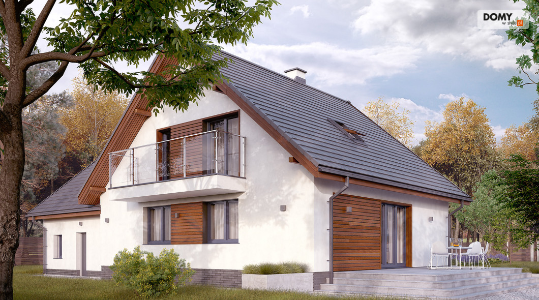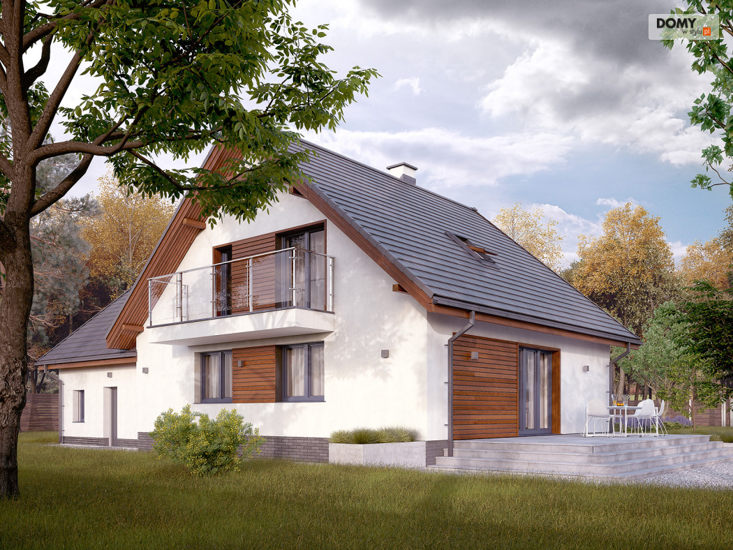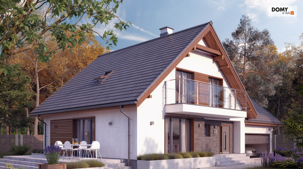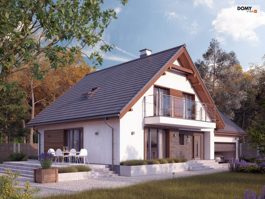 Wolta 3 to praktyczny dom jednorodzinny z użytkowym poddaszem i dwustanowiskowym garażem wkomponowanym w bryłę budynku. Na parterze znajduje się część dzienna z przestronnym salonem połączonym z jadalnią i kuchnią. Dodatkowo zaprojektowano wygodny wiatrołap, łazienkę oraz przejście do garażu i kotłowni. Praktycznym rozwiązaniem jest także umiejscowienie na parterze pokoju gościnnego. Strefa nocna została zlokalizowana na poddaszu, znajdują się tu trzy sypialnie, łazienka i garderoba. Na półpiętrze nad garażem znajduje się pokój do zagospodarowania pod sypialnię lub strych.
