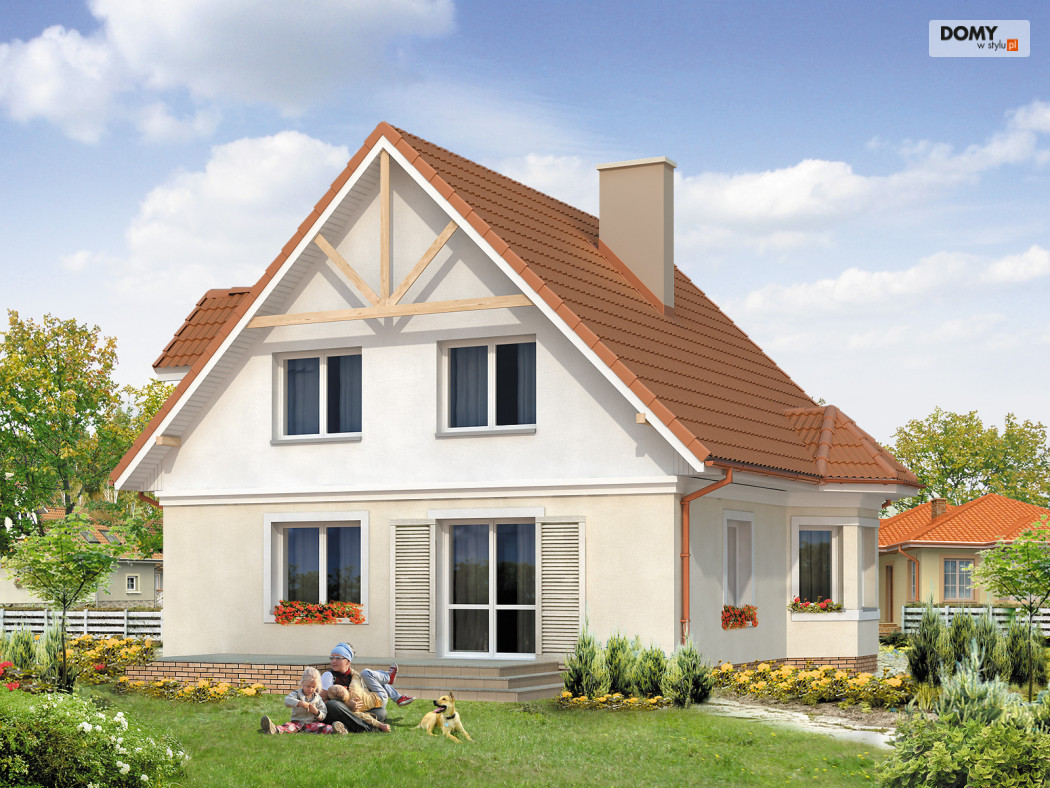 Dom jednorodzinny, parterowy z użytkowym poddaszem, niepodpiwniczony. Zaprojektowany został na rzucie kwadratu, co pozwoliło efektywnie wykorzystać powierzchnię. Dom prosty w budowie i tani w eksploatacji.