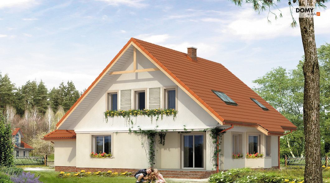 Mały, energooszczędny dom, idealny dla 4-osobowej rodziny. Dodatkowy pokój na parterze. Dom prosty w budowie.