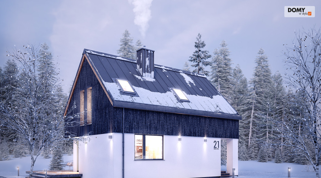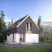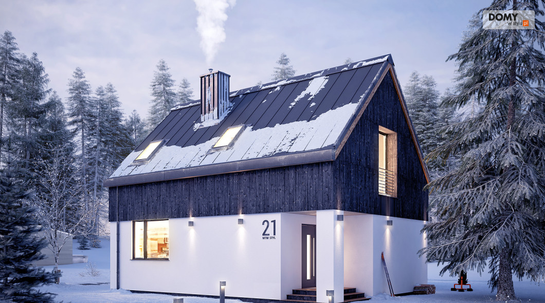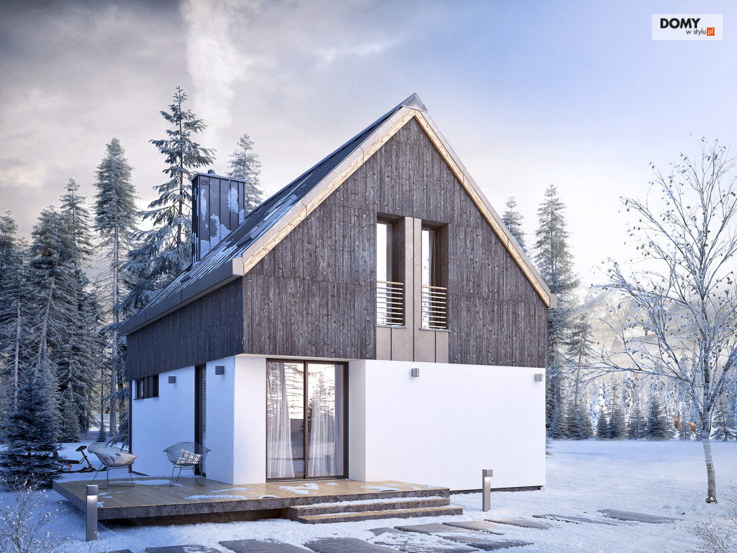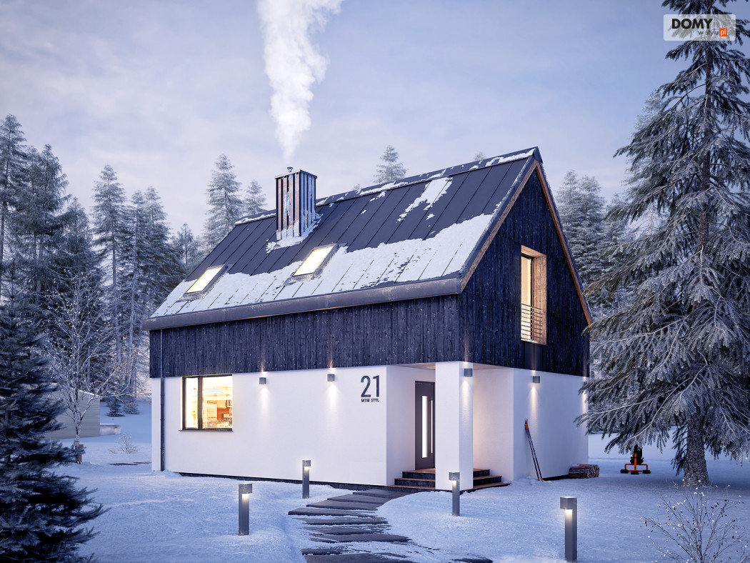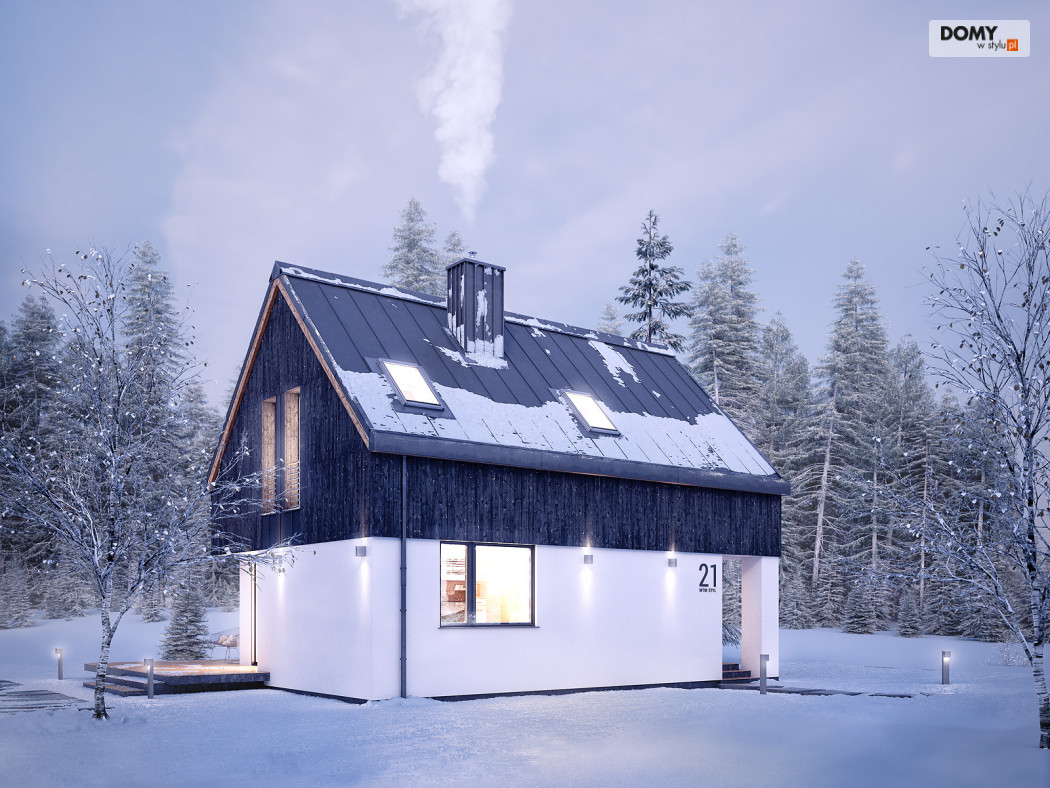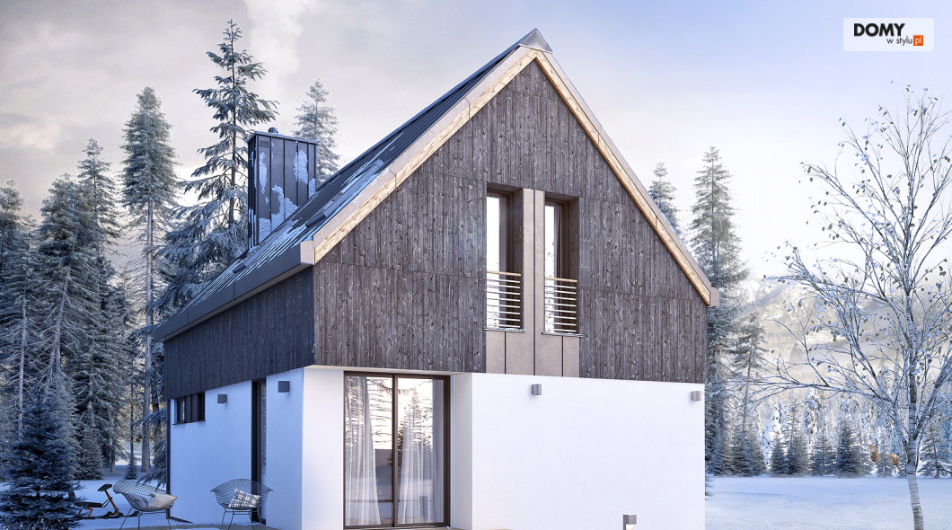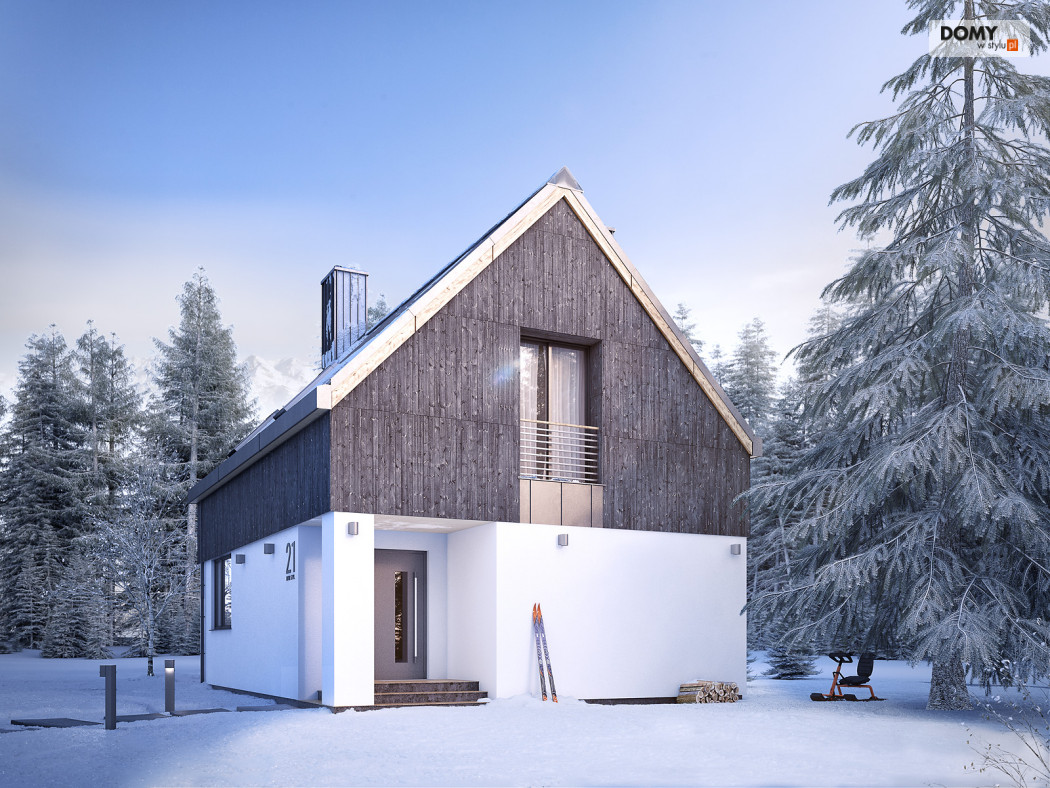 Przytulny dom dla 4-osobowej rodziny. Współczesna bryła budynku nawiązuje do budownictwa tradycyjnego. Wejście zostało podkreślone zapraszającym podcieniem. Na parterze znajduje się przestronna strefa dzienna z kominkiem, otwartą kuchnią i jadalnią. Strefa prywatna została zlokalizowana na poddaszu. Komfort użytkowania domu podnosi dodatkowa garderoba dostępna z głównej sypialni.