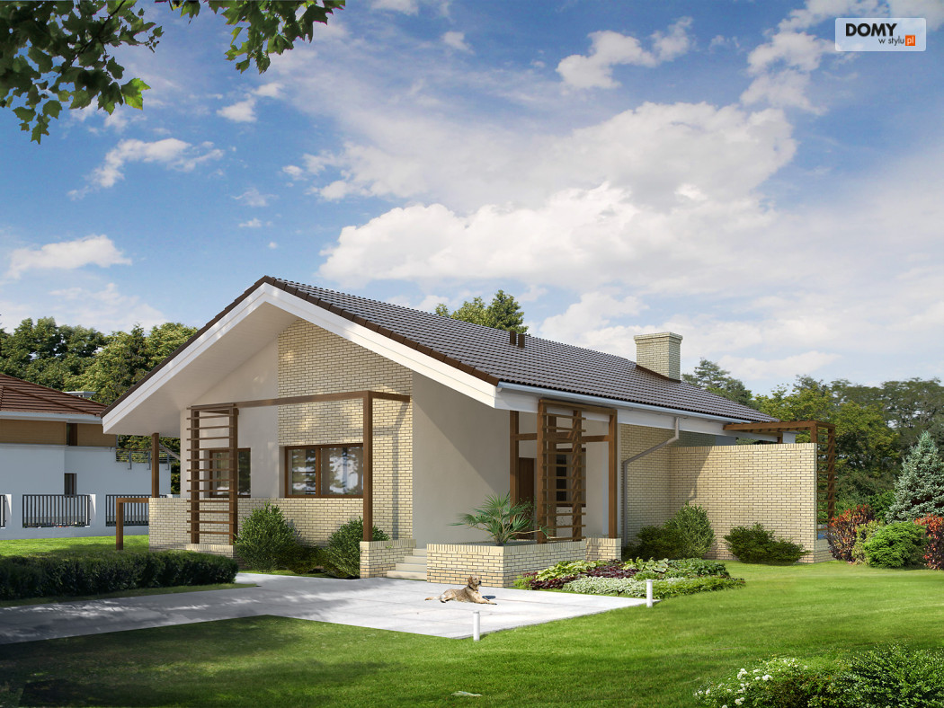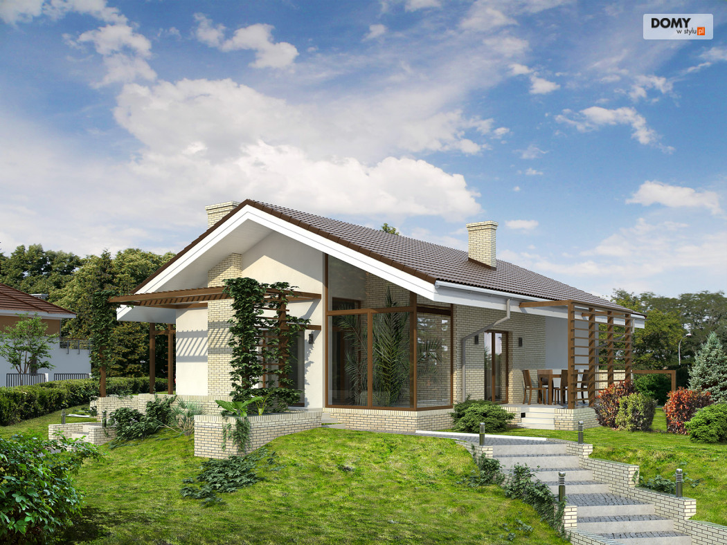 Jednorodzinny budynek mieszkalny parterowy, przeznaczony dla 4-osobowej rodziny. Na parterze przewidziano część dzienną i nocną, w piwnicy część gospodarczą, w tym kotłownię na paliwo stałe. Atutem projektu jest przestronna część dzienna otwarta na otoczenie poprzez szereg przeszkleń, dodatkowo wzbogacona oranżerią.