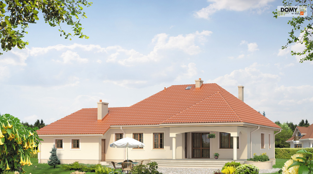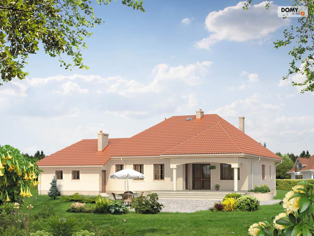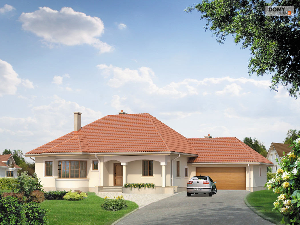 Dom jednorodzinny przeznaczony dla 3 – 4-osobowej rodziny. W części dziennej zaprojektowano salon z jadalnią, kuchnię ze spiżarnią. W części nocnej pokój, sypialnia z garderobą oraz dwie przestronne łazienki. Duży garaż dwustanowiskowy.