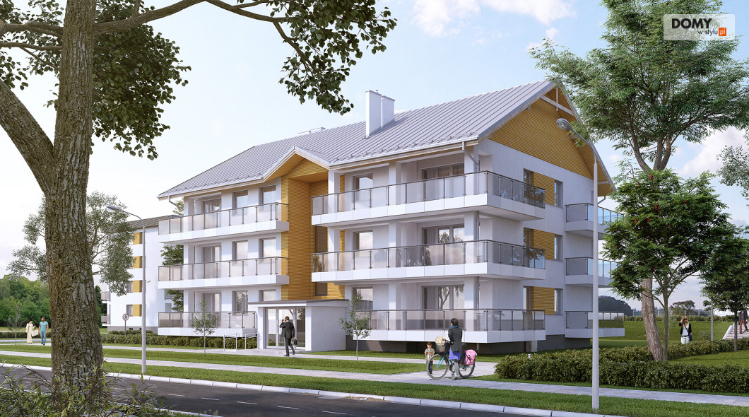 Akant 4 to projekt budynku wielorodzinnego zaprojektowany w nowoczesnej stylistyce. W projekcie przewidziano 12 mieszkań zaprojektowanych na trzech kondygnacjach. Mieszkania są zróżnicowane pod względem powierzchni użytkowej oraz funkcjonalności. W projekcie znajdują się: 3 mieszkania 1-pokojowe, 4 mieszkania 2-pokojowe oraz 5 mieszkań 3-pokojowych. Każdy lokal mieszkalny posiada osobną instalację grzewczą z kotłem gazowym oraz duży narożny taras. Budynek został wykończony w nowoczesnej stylistyce. Biała elewacja została urozmaicona deską elewacyjną w naturalnym odcieniu, która idealnie komponuje się ze szklanymi balustradami oraz blachą na rąbek pokrywającą dwuspadowy dach o nachyleniu 30 stopni.