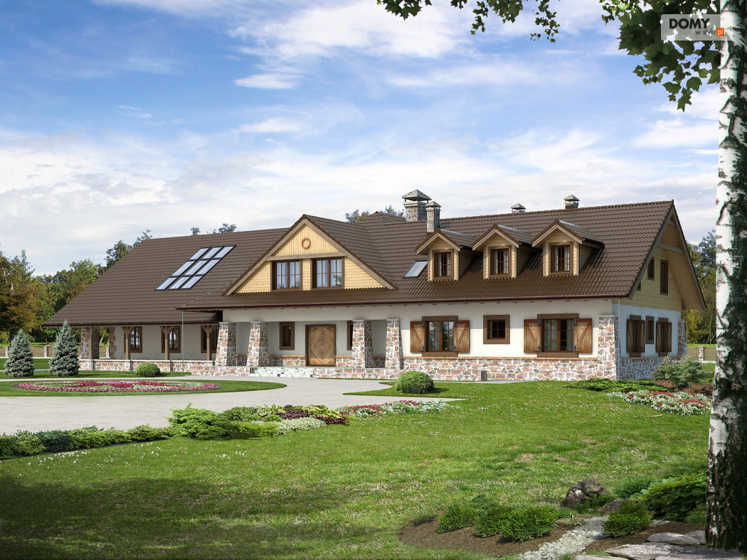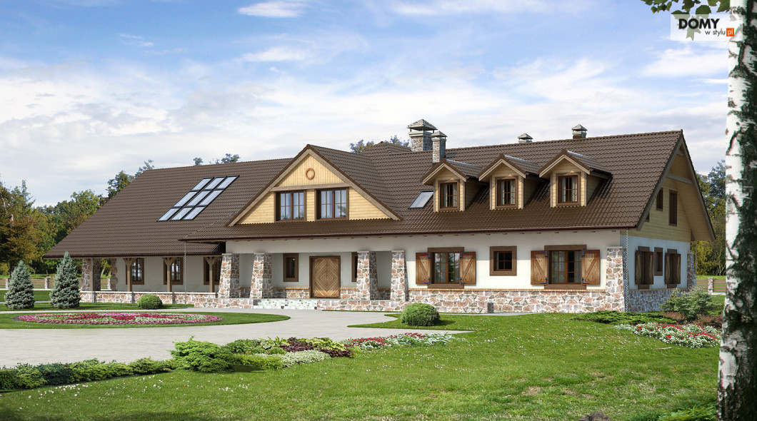 Przestronny pensjonat zaprojektowany w uroczym, rustykalnym klimacie. Na parterze zaprojektowano trzy pokoje do wynajęcia wraz z łazienkami, dostępne dla osób niepełnosprawnych. Na poddaszu przewidziano osiem pokoi pod wynajem. Dodatkowym atutem projektu są dwie sale konsumpcyjne, na parterze i poddaszu.
