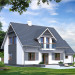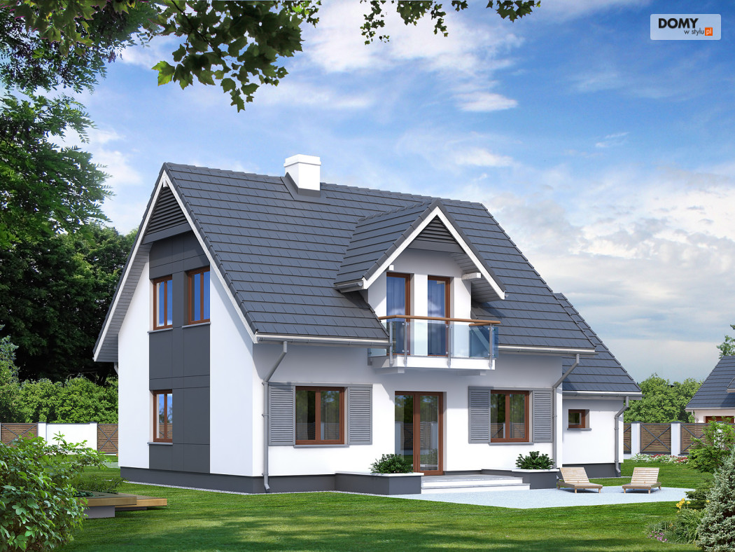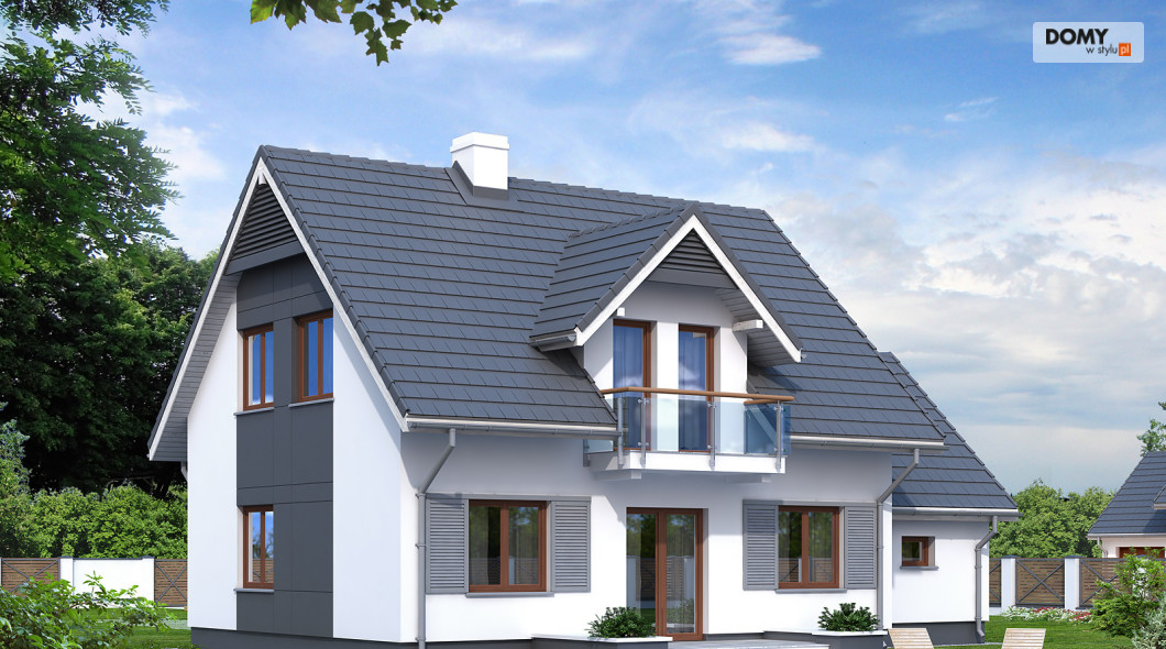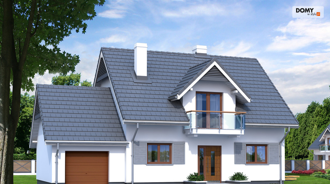 Dom jednorodzinny z poddaszem użytkowym, garażem i piwnicą. Na parterze oprócz części dziennej znajdziemy dodatkowy pokój. W piwnicy zaprojektowano kotłownię i dwa pomieszczenia gospodarcze. Na poddaszu znajdują się trzy sypialnie, łazienka i garderoba.