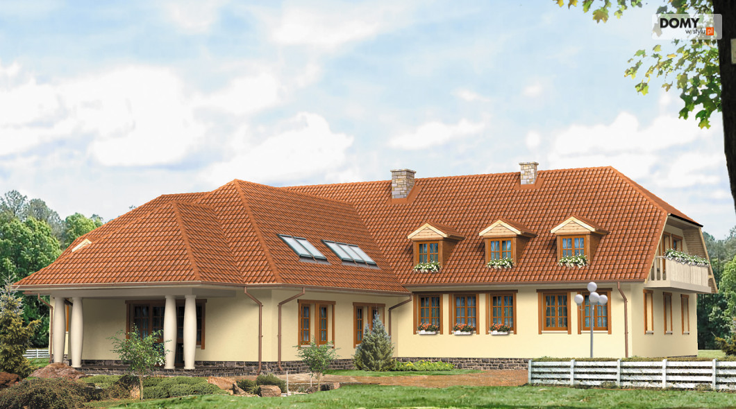 Budynek pensjonatu z osiemnastoma pokojami do wynajęcia i niewielką częścią mieszkalną właściciela. Od strony ogrodu zaprojektowano salę rekreacyjną. W podpiwniczeniu zlokalizowano ciąg kuchenny z magazynami i kotłownią. Wygląd budynku nawiązuje do starych polskich tradycji.