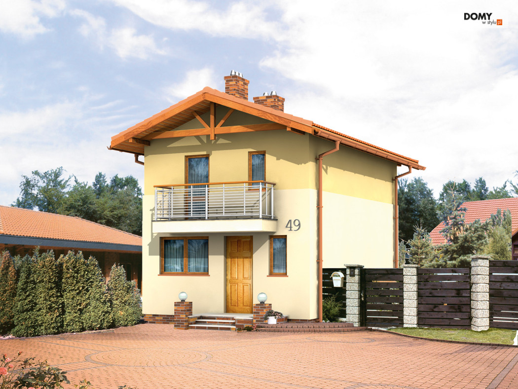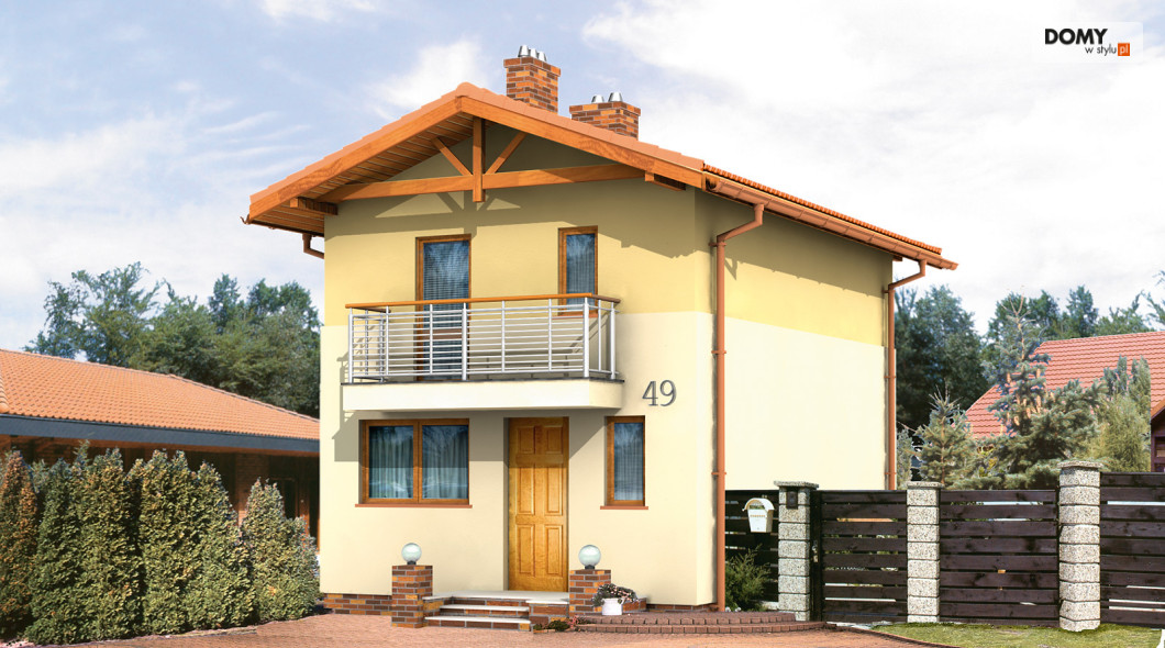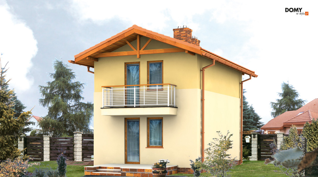 Mały, funkcjonalny domek jednorodzinny dla 2 – 3-osobowej rodziny. Dwie pełne kondygnacje. Idealny na wąską działkę.