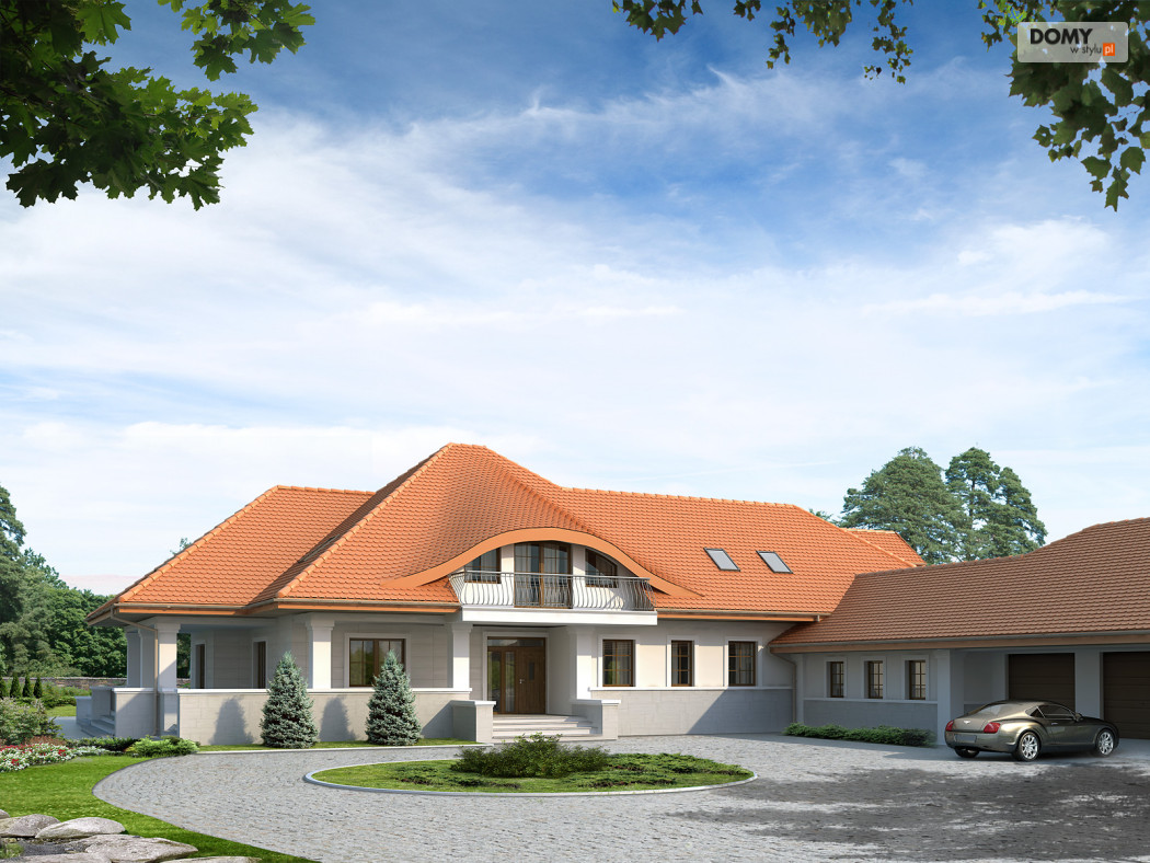 Przestronny, reprezentacyjny dom parterowy z użytkowym poddaszem, podpiwniczony. Przeznaczony dla wieloosobowej rodziny. Przestronna część dzienna wzbogacona o oranżerię i antresolę.